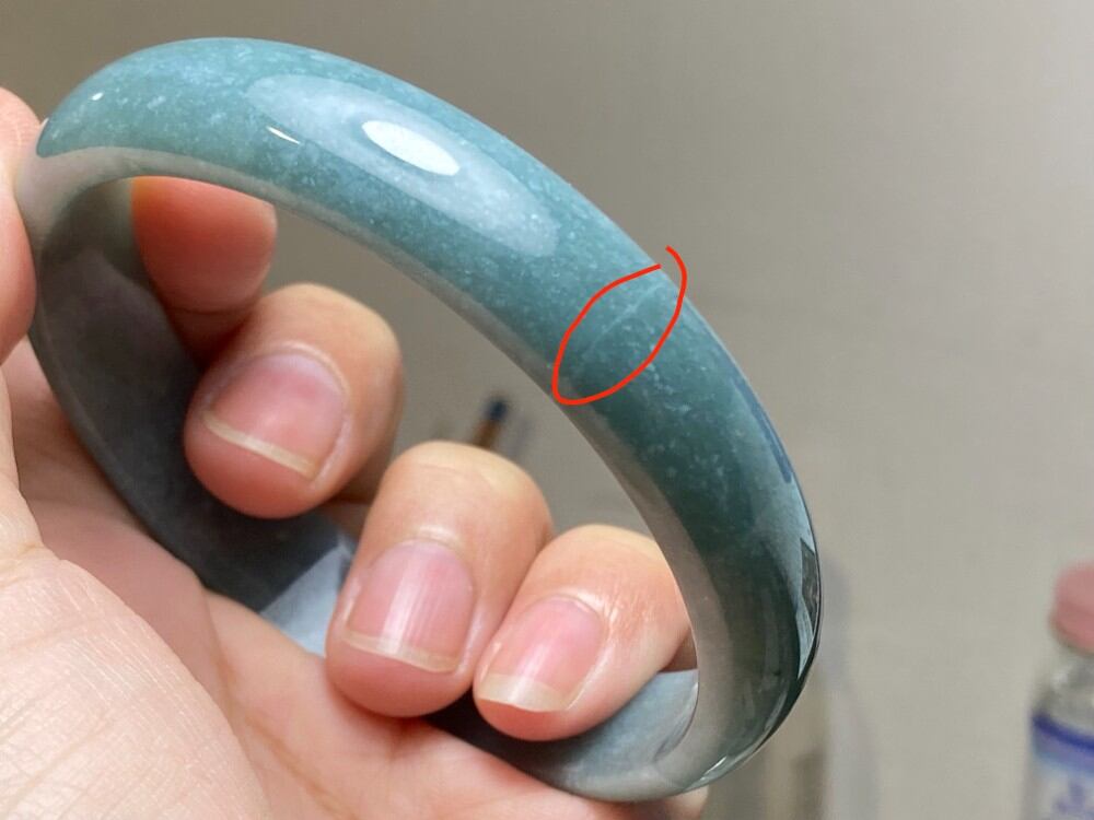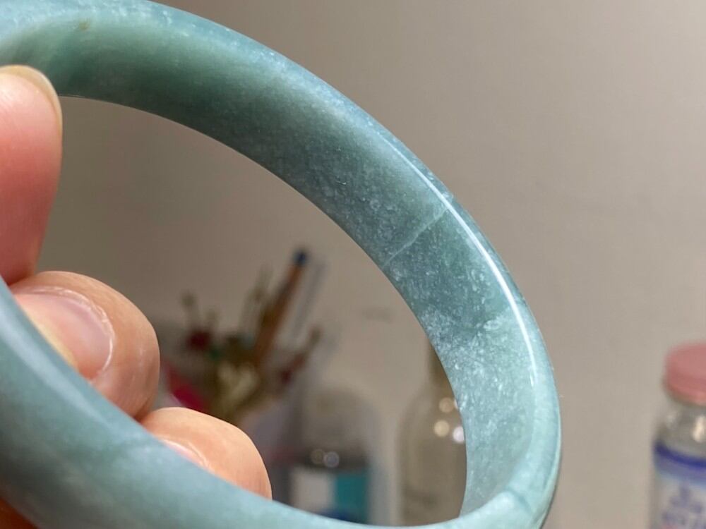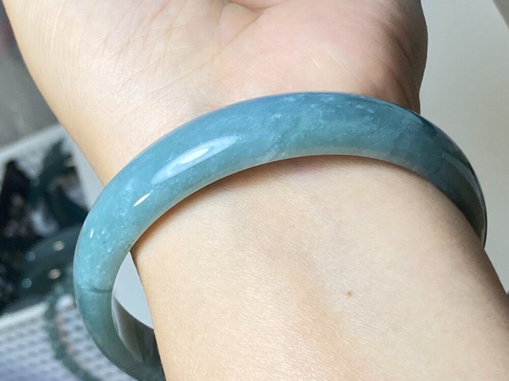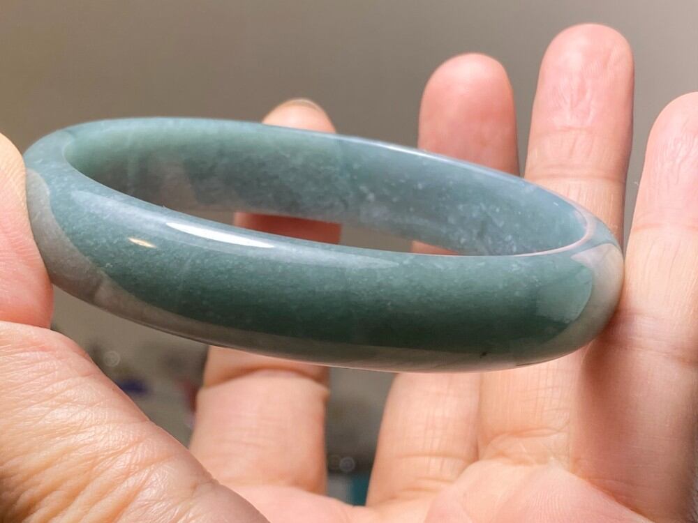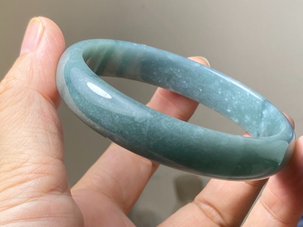 BG9-17 訳あり処分品 糯種 青灰色 62.5MM グアテマラ産 本翡翠 バングル