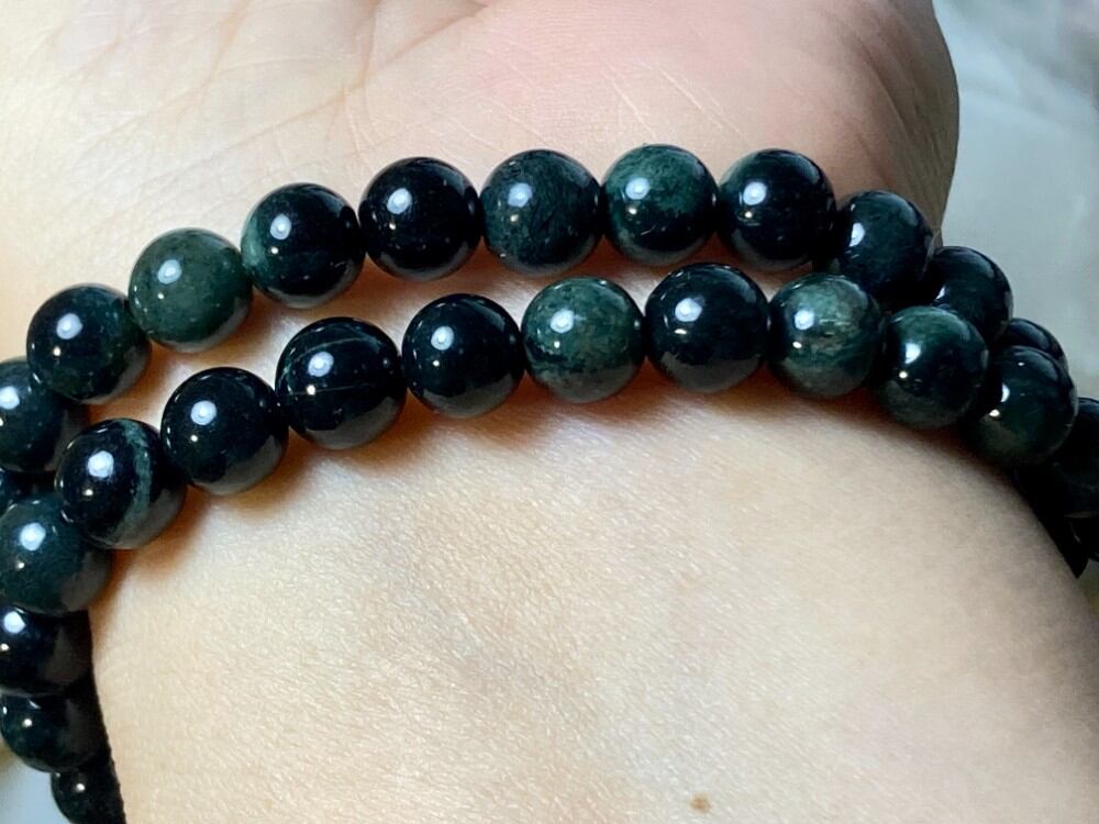 BR7-13 黒翡翠 墨緑色 7.0mm ミャンマー産 天然本翡翠 ブレスレット