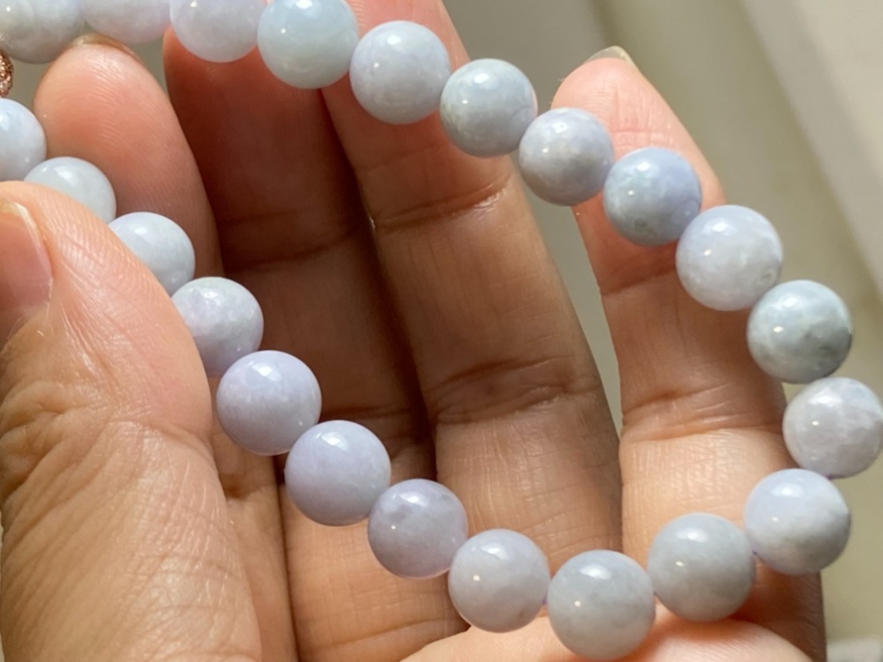 BR7-14 一点物 薄ラベンダー 8.5mm ミャンマー産 天然本翡翠 ブレスレット
