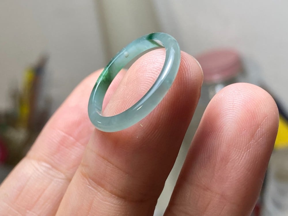 L10-205 氷種 氷青緑飃緑花 10.0号 天然グアテマラ産 A貨 本翡翠 くりぬき リング