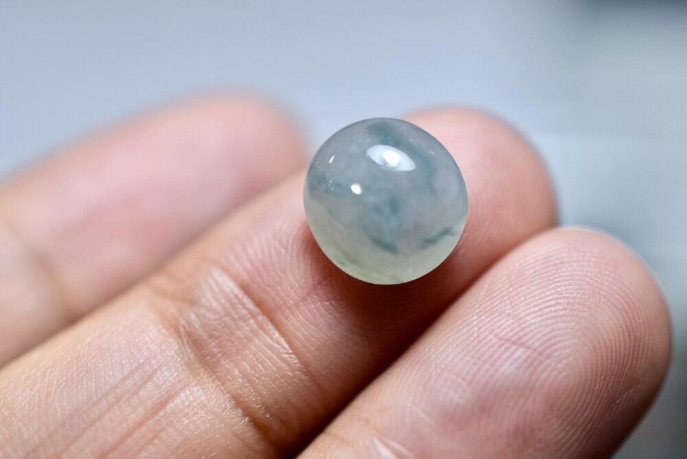 氷糯種 青白底飃藍花 天然ミャンマー産 A貨 本翡翠 ルース、ヒビ傷がございません、ほぼ完璧の一点物(*^^*)