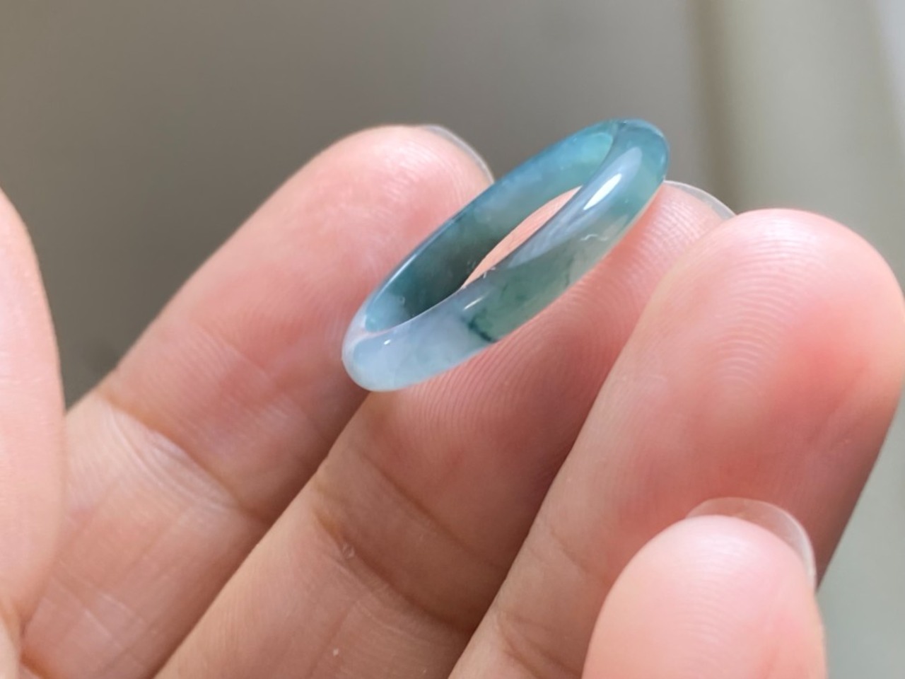 L11-47 氷糯種 青緑色 13.5号 天然グアテマラ産 A貨 本翡翠 くりぬき リング