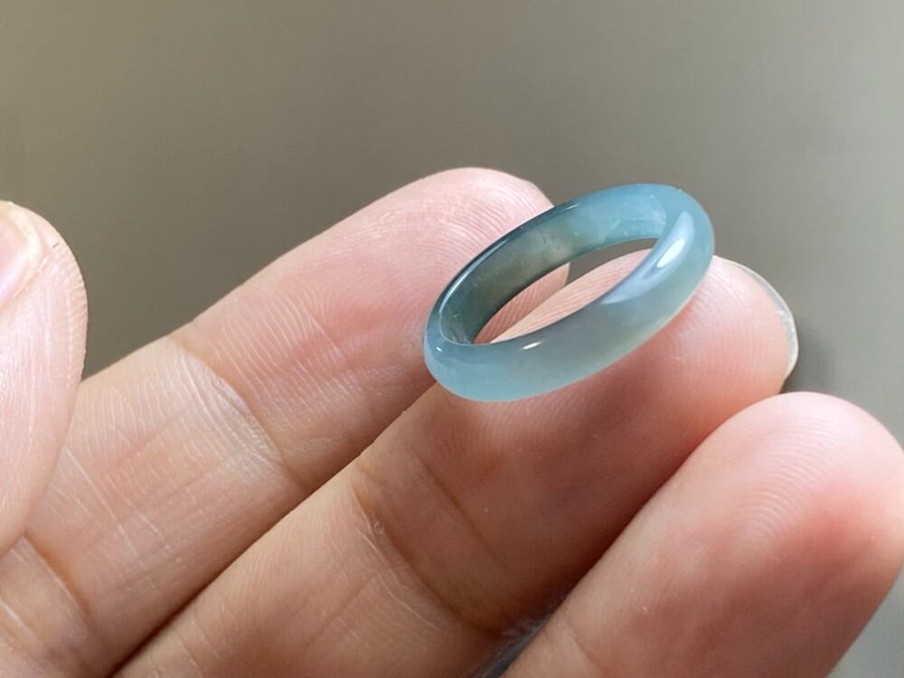 L11-53 氷種 ピンキーリング 青緑色 7.5号 天然グアテマラ産 A貨 本翡翠 くりぬき リング