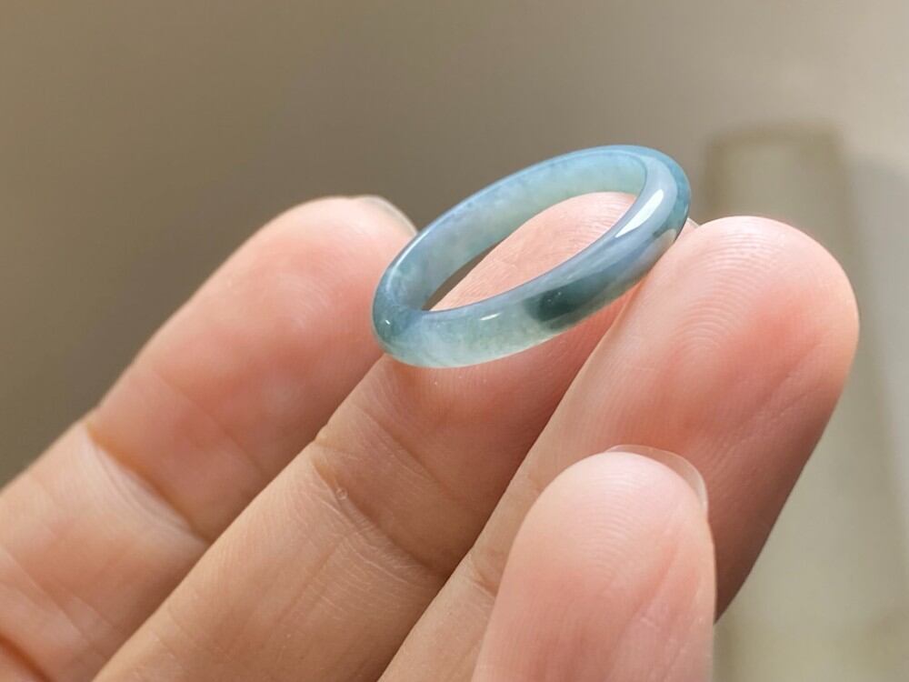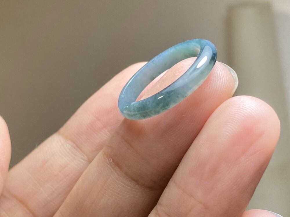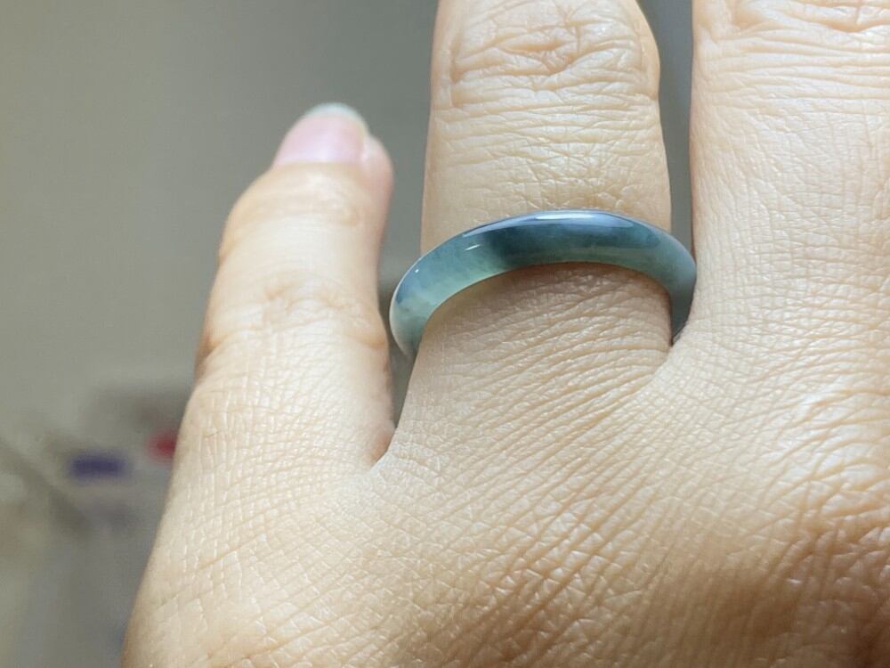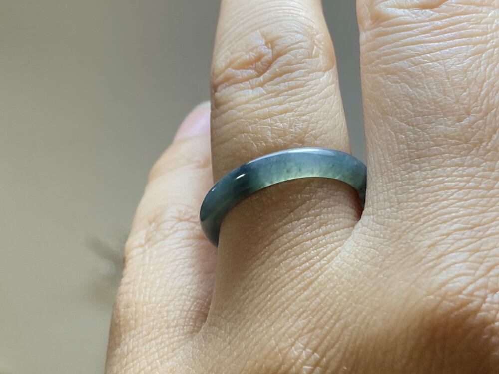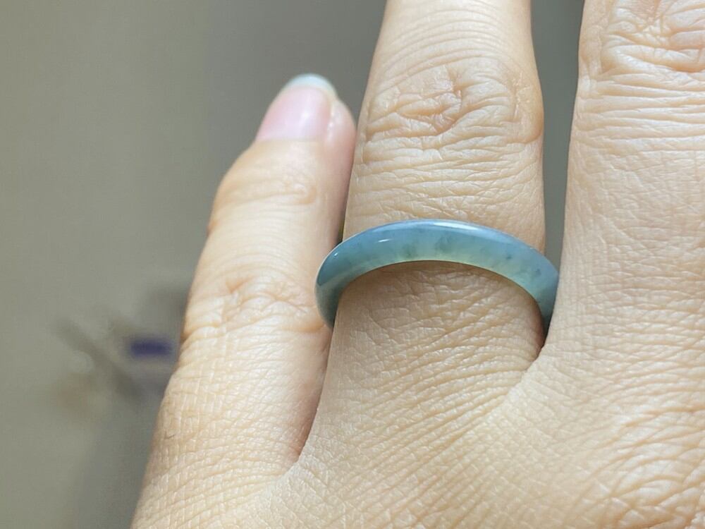 L11-52 氷糯種 青灰色 13.5号 天然グアテマラ産 A貨 本翡翠 くりぬき リング
