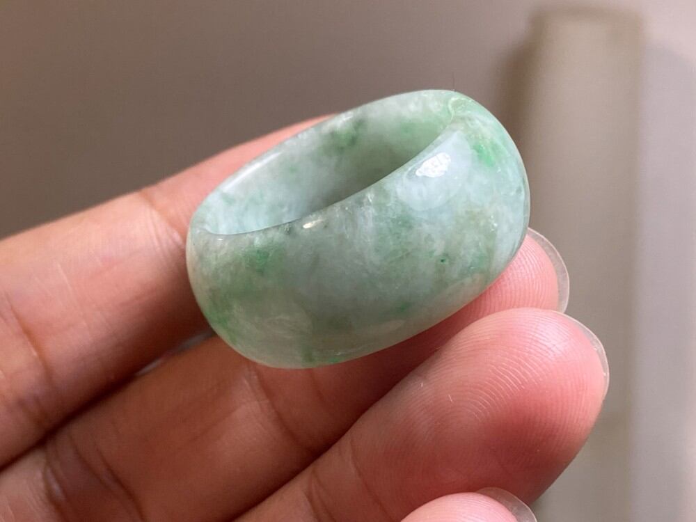 L11-65 美品 緑花 29.0号 ミャンマー産天然 A貨 本翡翠 くりぬき リング