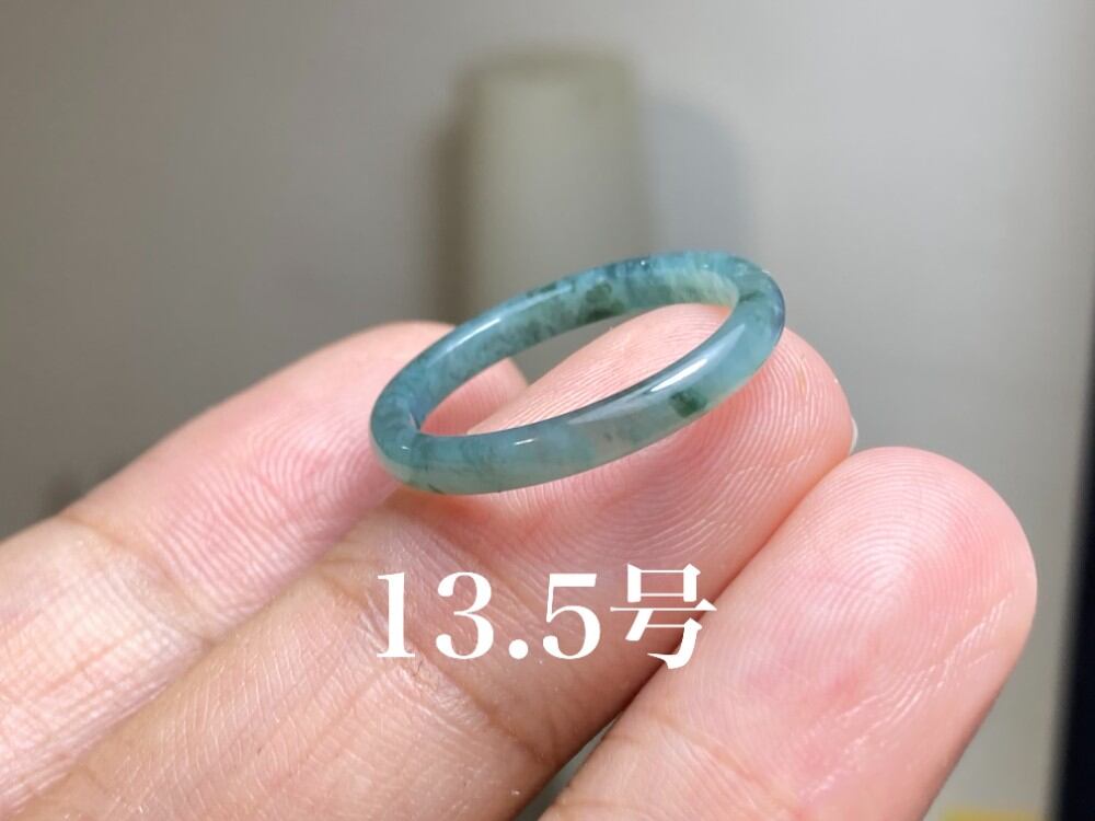 L11-60 細身 青緑色 13.5号 天然グアテマラ産 A貨 本翡翠 くりぬき リング