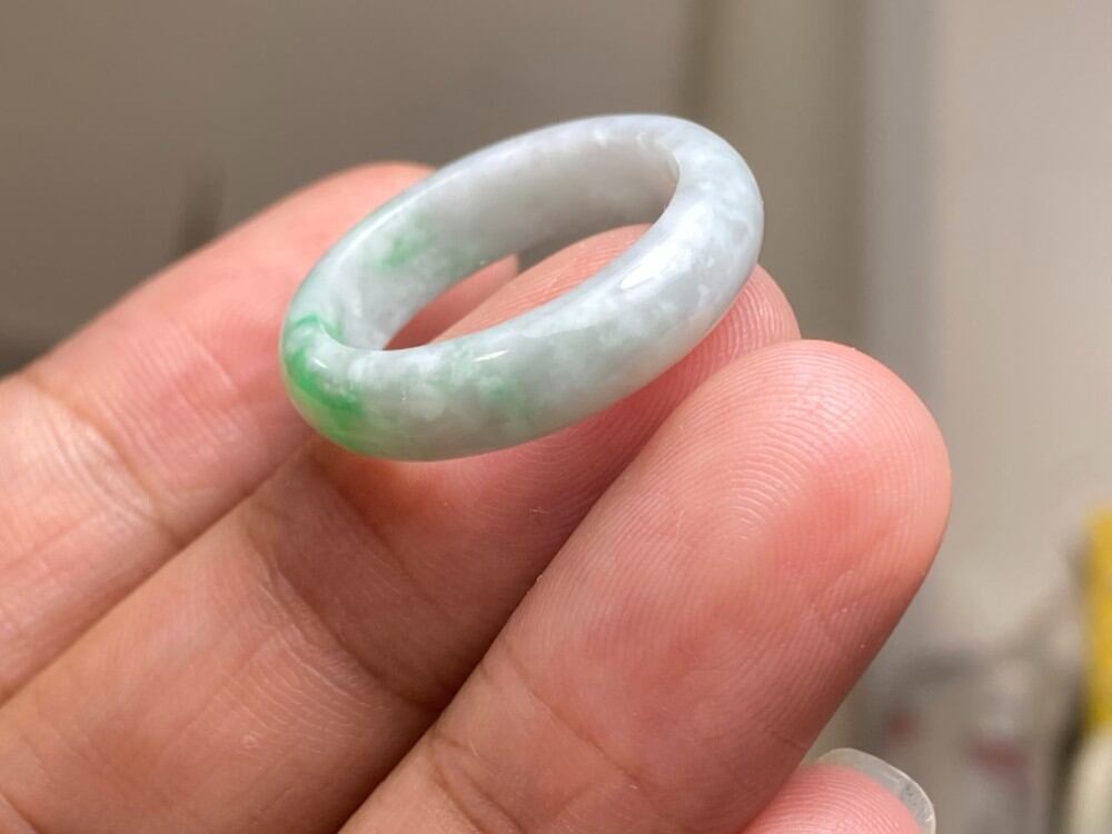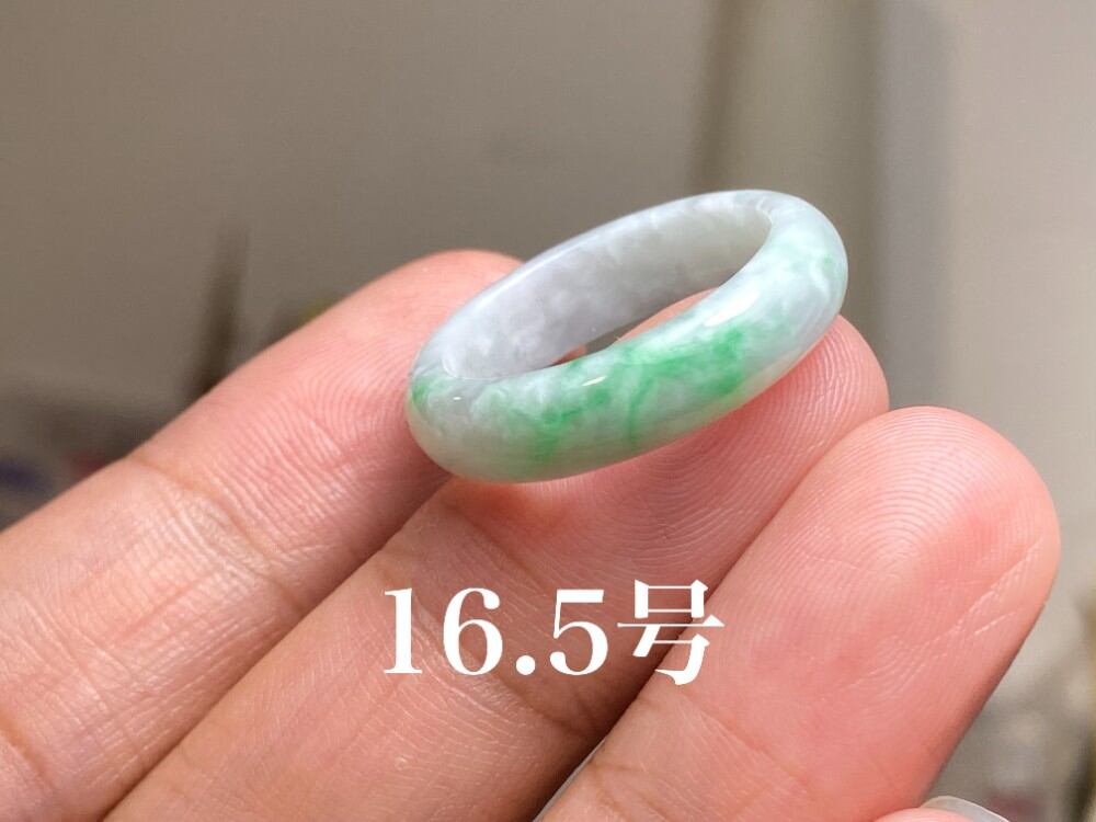 L11-80 美品 白底陽緑 16.5号 ミャンマー産天然 A貨 本翡翠 くりぬき リング