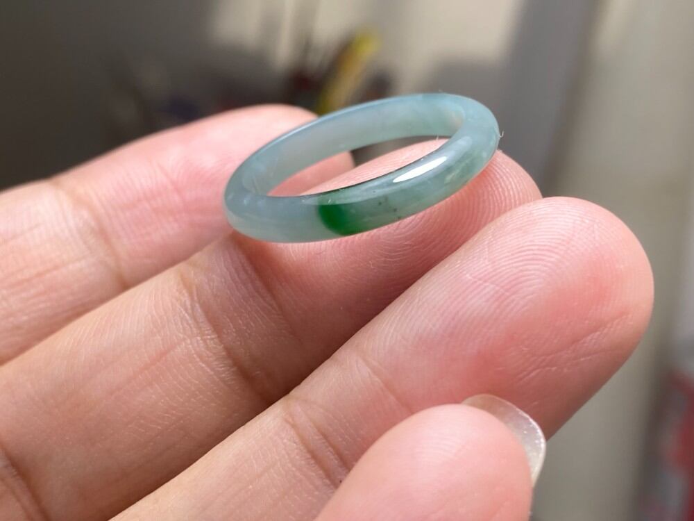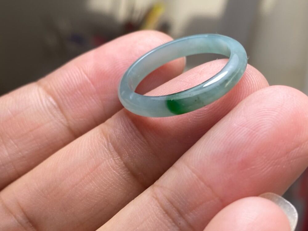 L11-81 氷種 薄青緑+深緑 13.5号 天然グアテマラ産 A貨 本翡翠 くりぬき リング