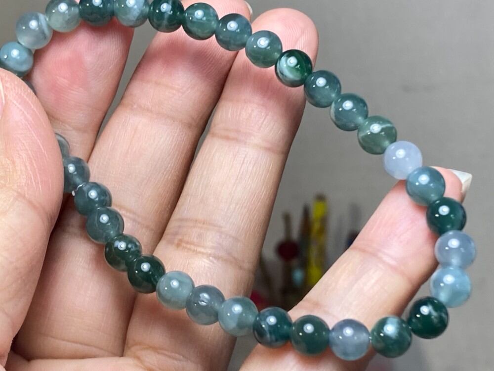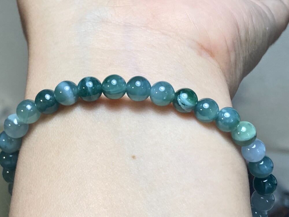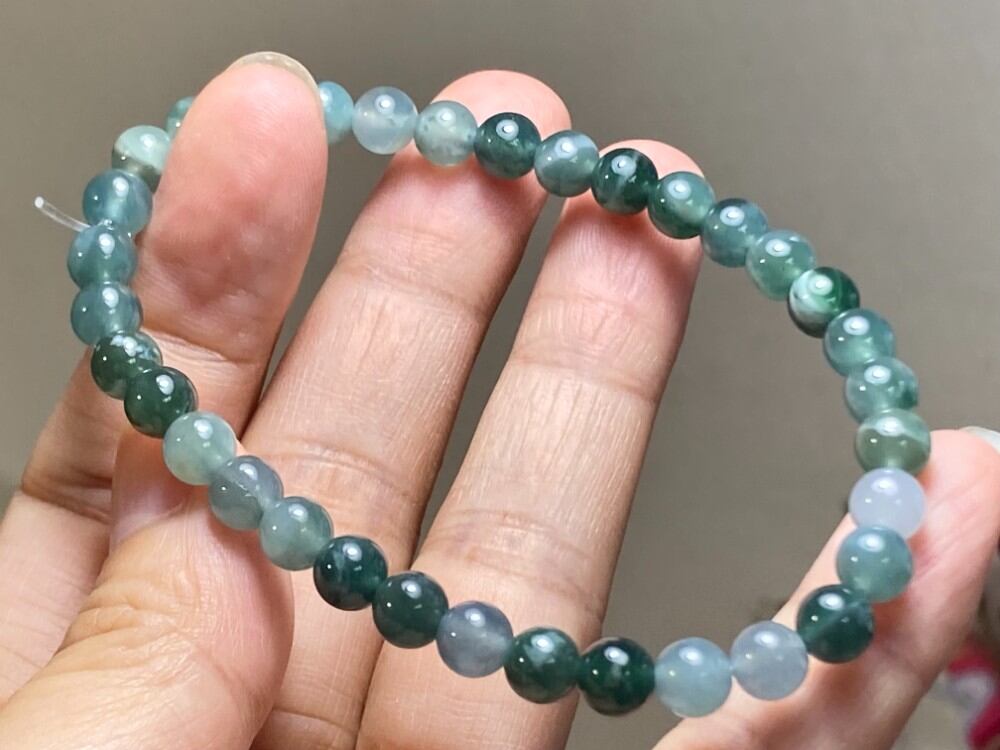 BR7-17 一点物 氷種 青緑 青色 6.0mm グアテマラ産 天然 本翡翠 ブレスレット
