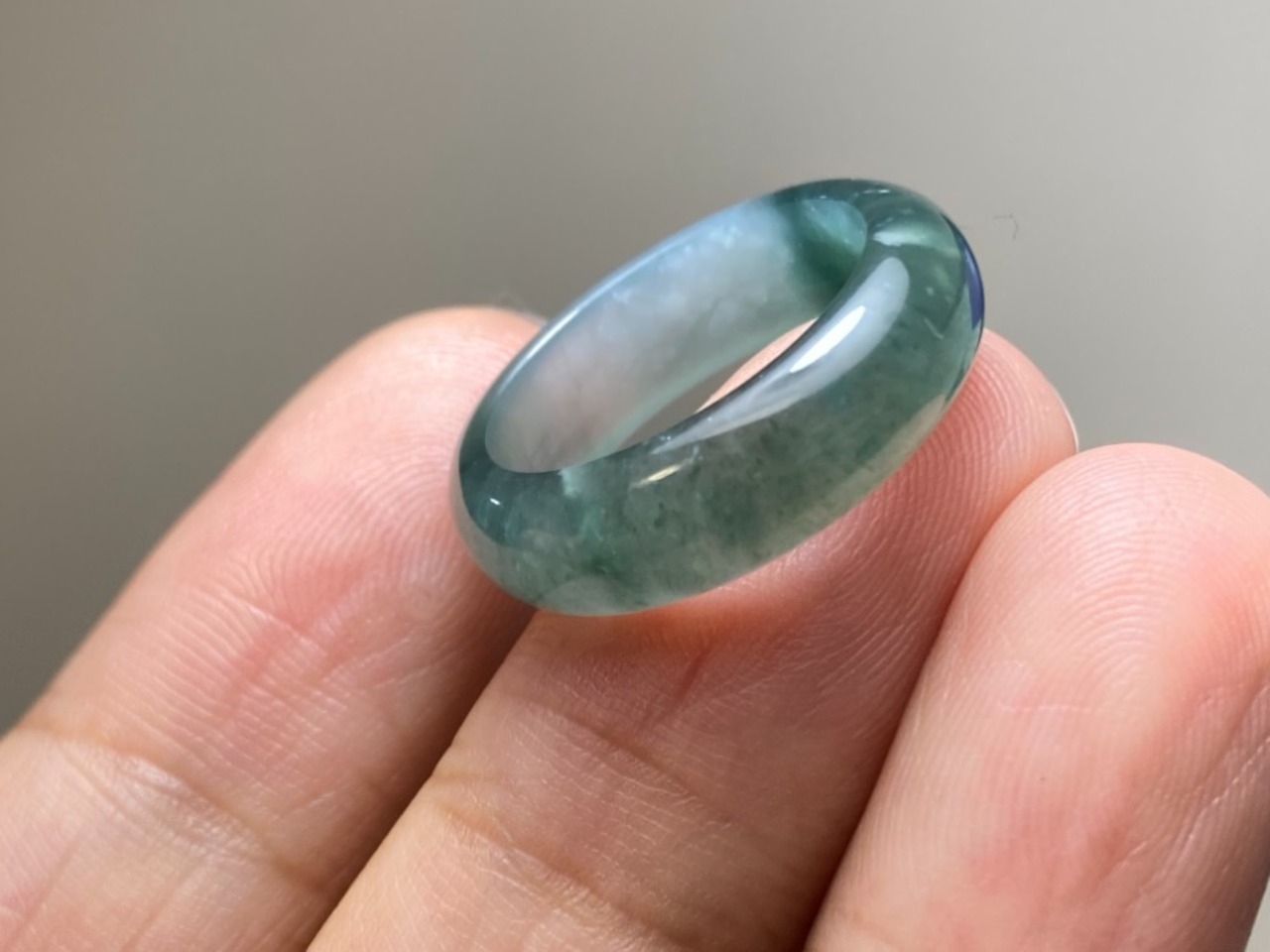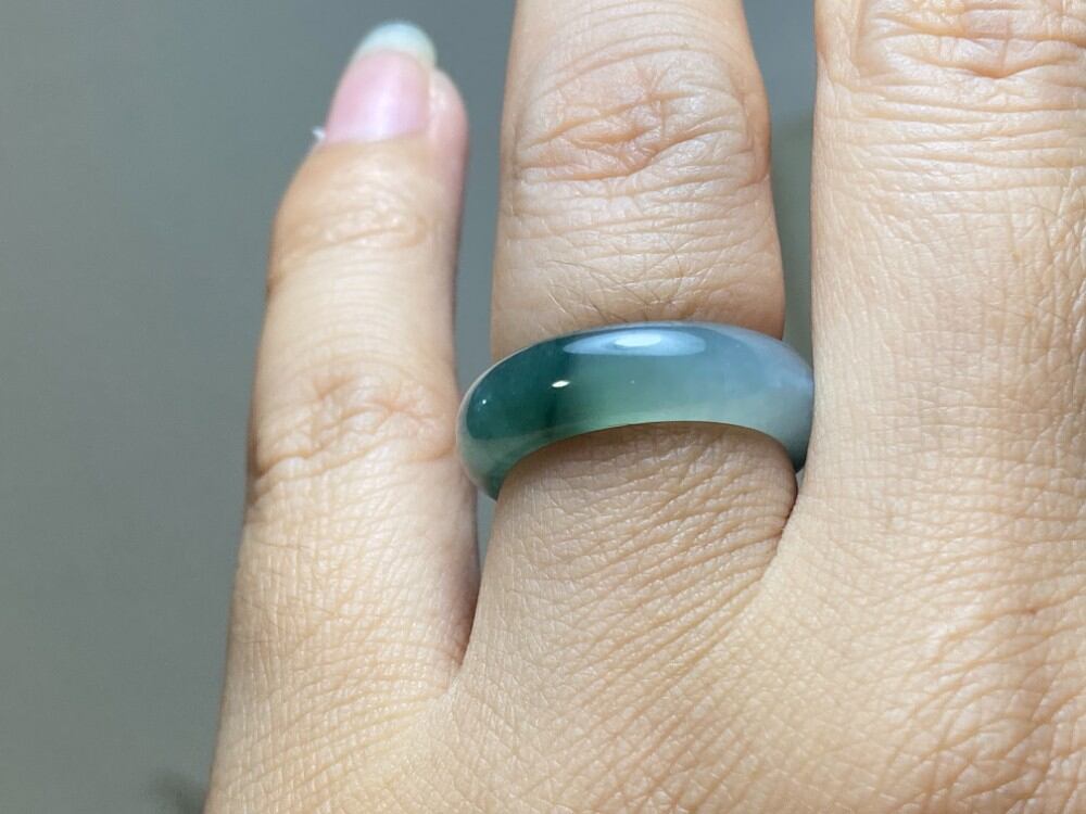 L11-103 氷種 ピンキーリング 薄青白 青緑 10.5号 天然グアテマラ産 A貨 本翡翠 くりぬき リング
