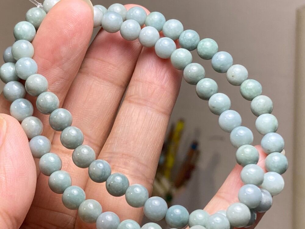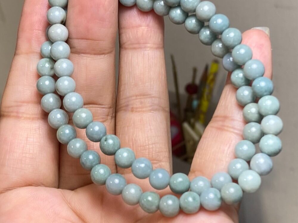 BR7-19 一点物 グレー青 6.0mm グアテマラ産 天然 本翡翠 ブレスレット