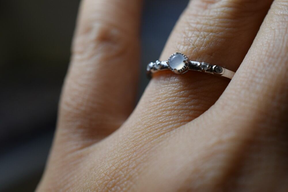 RG10-32 シルバー ミャンマー産 氷種 白氷翡翠 本翡翠 ヒスイ 指輪 フリーサイズ 金属アレルギー対応