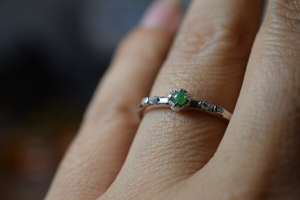 RG10-34 シルバー ミャンマー産 果緑 本翡翠 ヒスイ 指輪 フリーサイズ 金属アレルギー対応