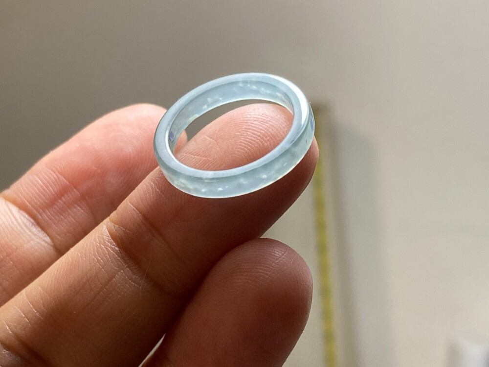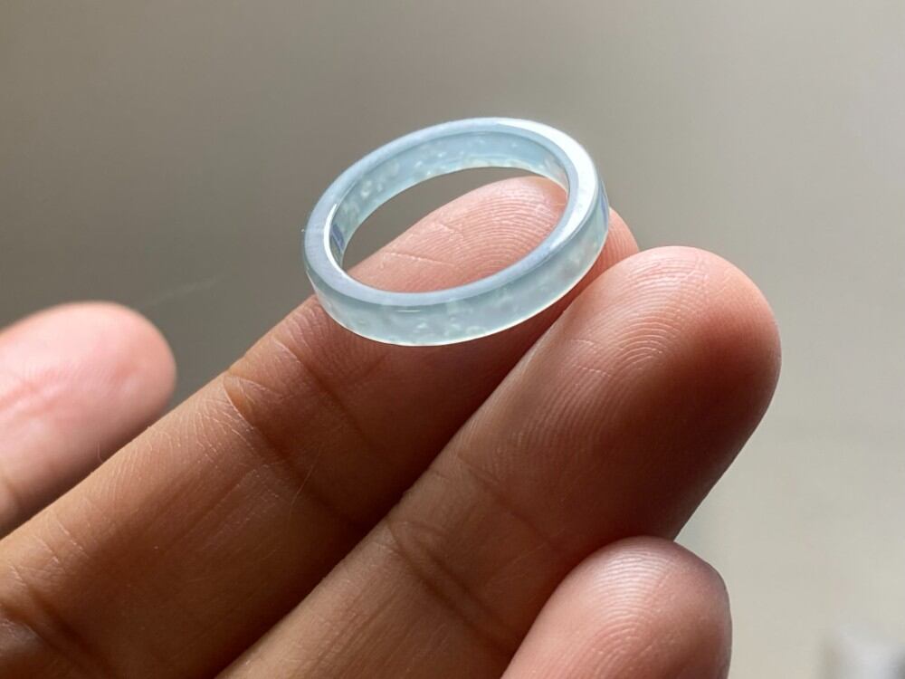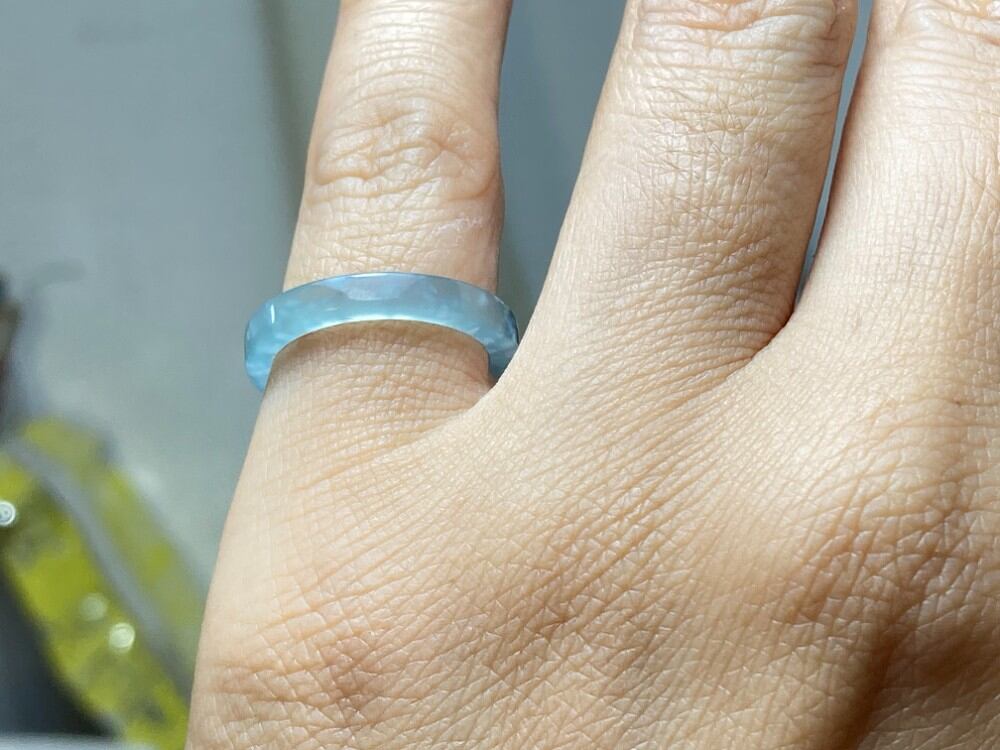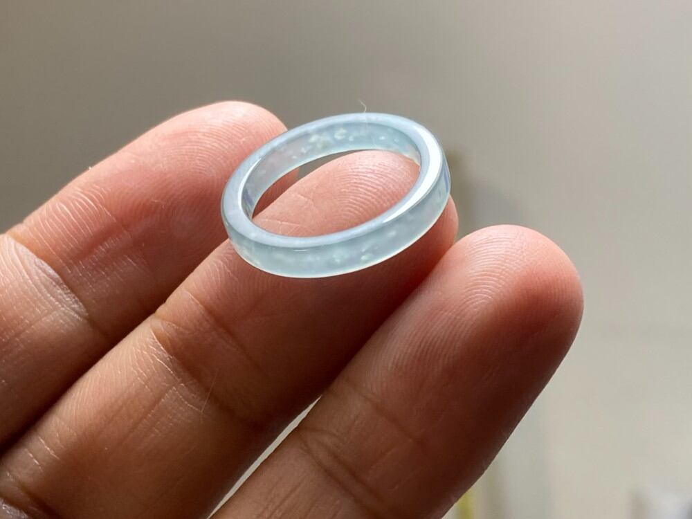 L11-125 ピンキーリング 薄水色 氷種 7.5号 天然グアテマラ産 A貨 本翡翠 くりぬき リング