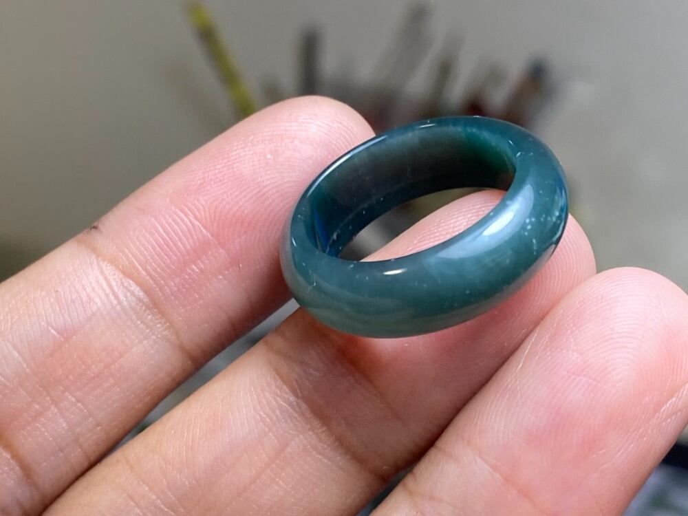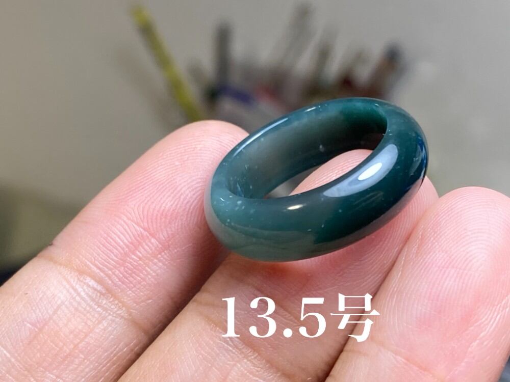 L11-140 氷糯種 紺色 13.5号 天然グアテマラ産 A貨 本翡翠 くりぬき リング