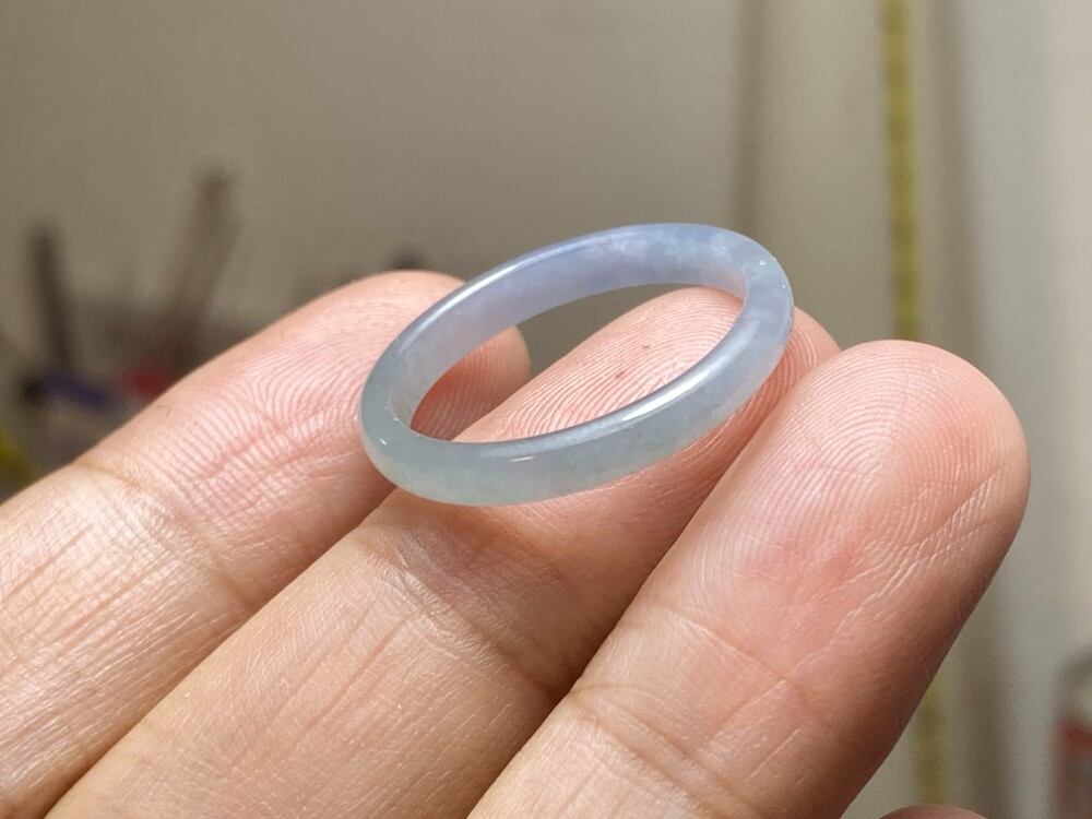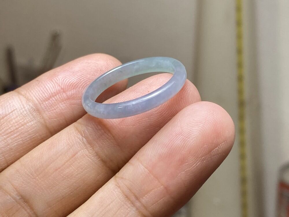 L11-141 薄ラベンダー・ブルー 19.5号 天然グアテマラ産 A貨 本翡翠 くりぬき リング