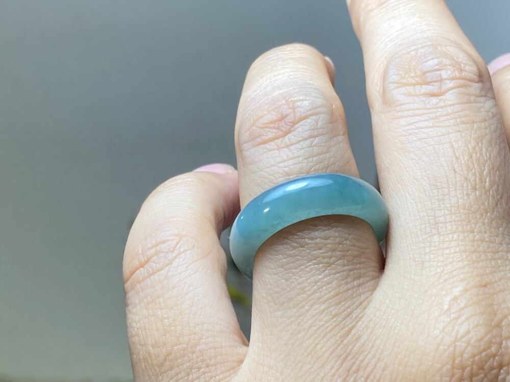 L11-144 氷種 青色 13.5号 天然グアテマラ産 A貨 本翡翠 くりぬき リング