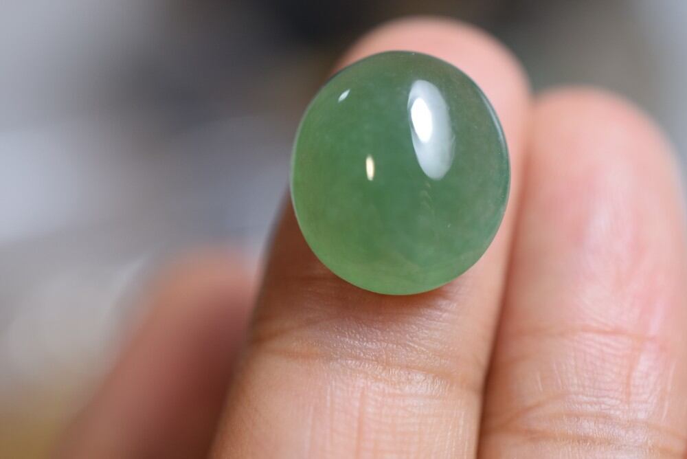 大粒 氷種 宝石質 果緑色 ミャンマー産 天然 A貨 本翡翠 ルース、裏面には少し石紋が見えます、表面から見えないです、一点物(*^^*)