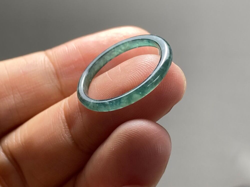 L11-176 細身 氷種 青緑 15.0号 天然グアテマラ産 A貨 本翡翠 くりぬき リング