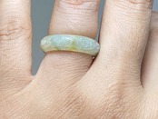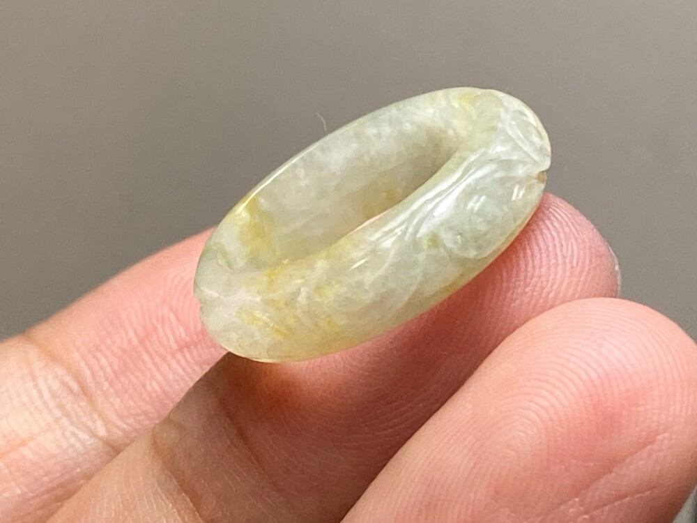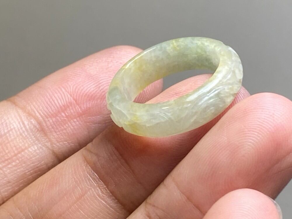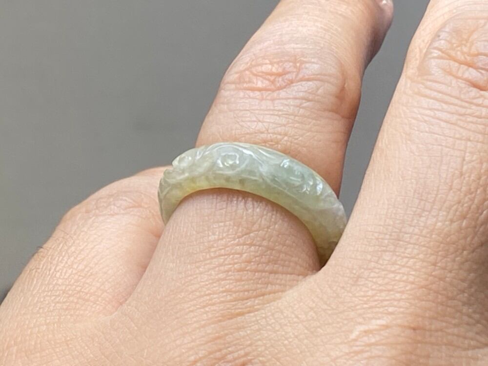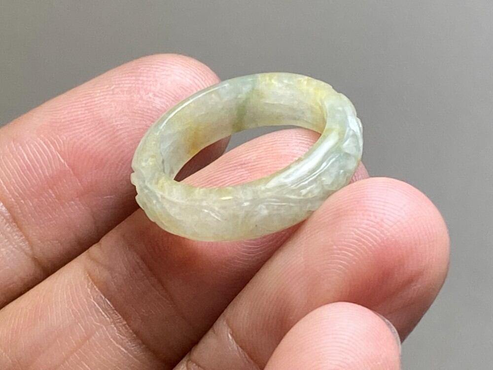 L11-211 氷種 彫花藤草 薄黄色 10.5号 ミャンマー産 A貨 本翡翠 くりぬき リング 黄翡翠