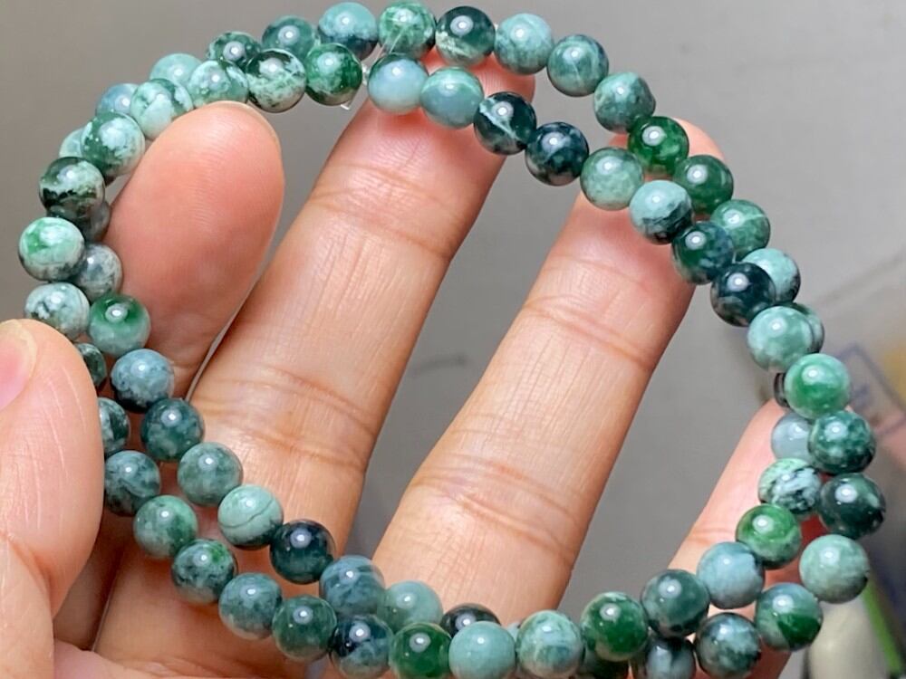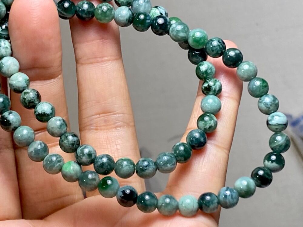 BR7-29 深青緑 花青 グレー青 氷糯種 6.0mm グアテマラ産 天然 本翡翠 ブレスレット