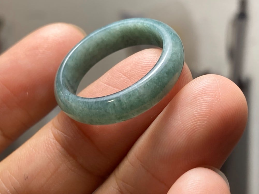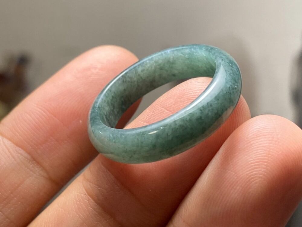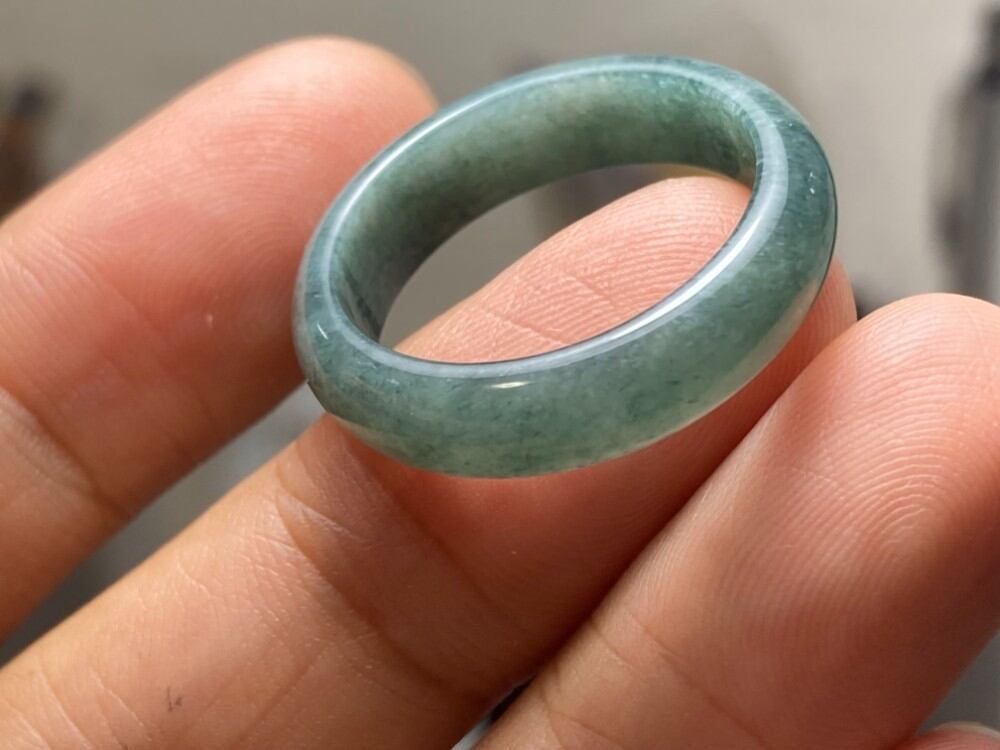 L11-221 糯種 グレー青 19.5号 天然グアテマラ産 A貨 本翡翠 くりぬき リング