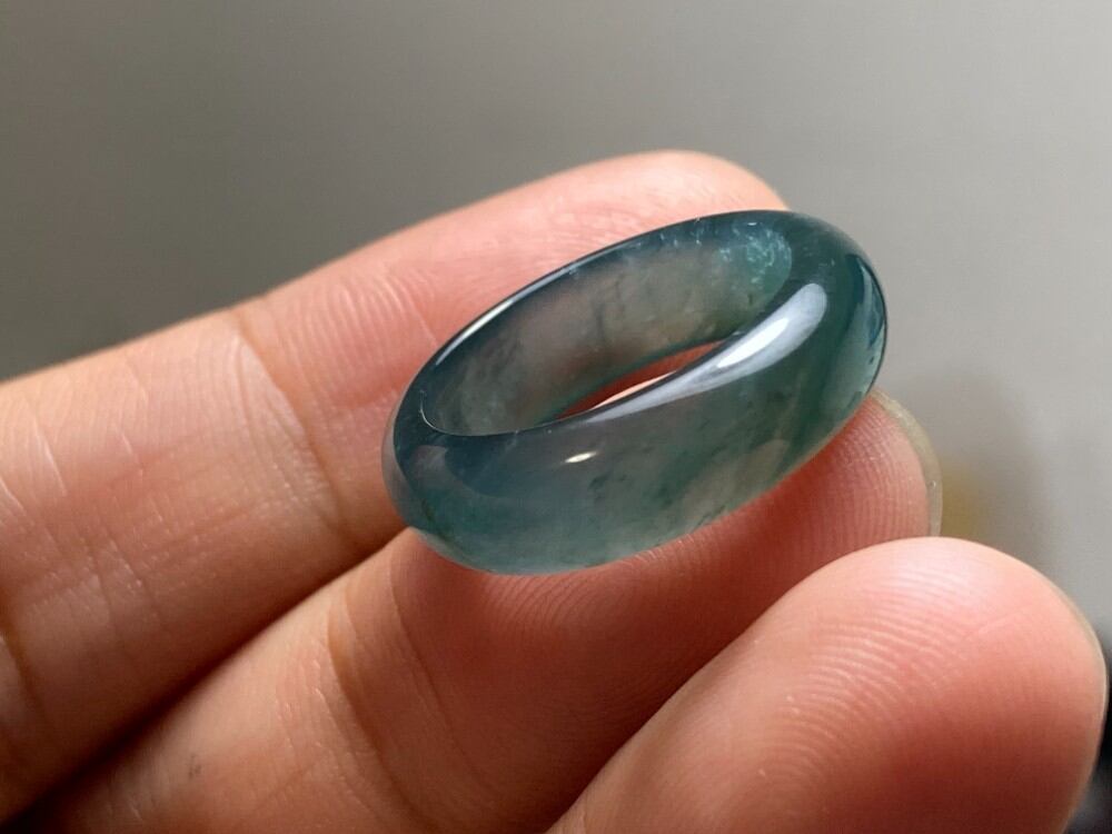 L11-216 ピンキーリング 氷種 灰青緑色 10.5号 天然グアテマラ産 A貨 本翡翠 くりぬき リング