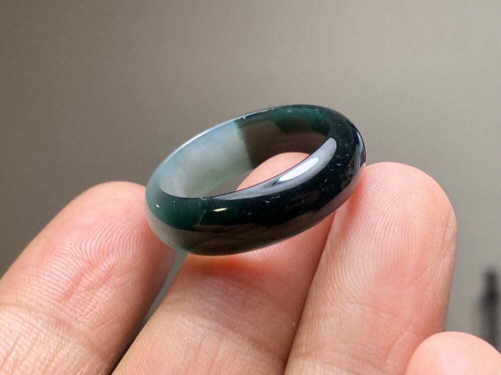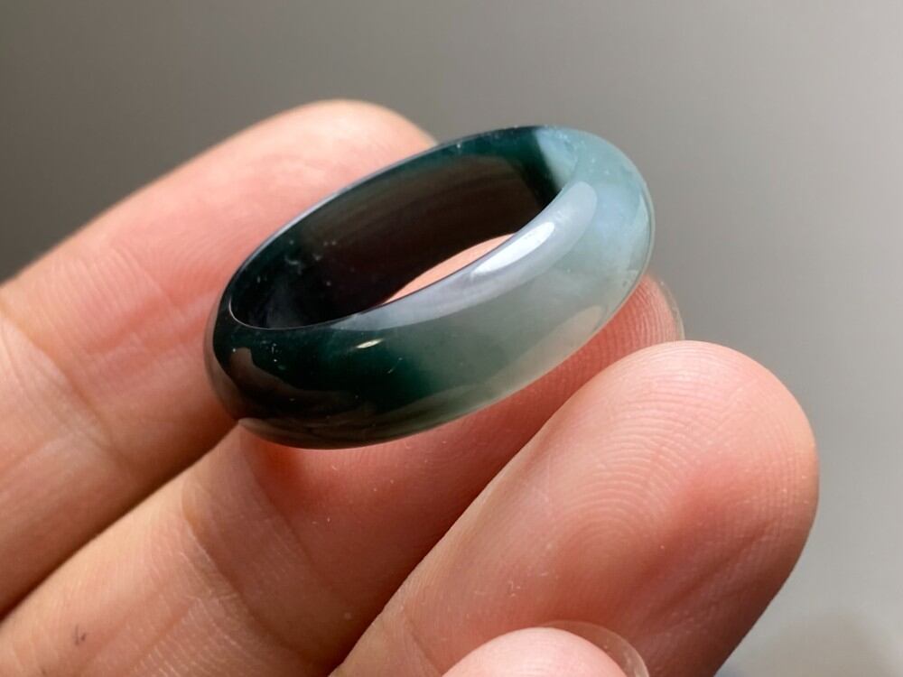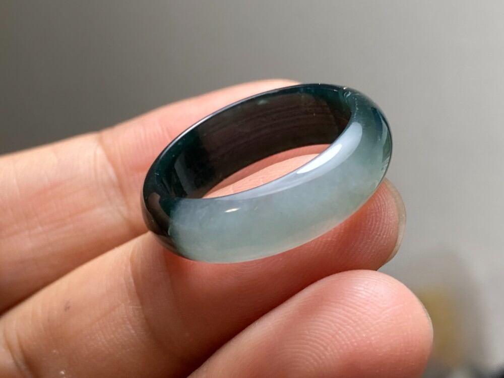 L11-213 氷種 紺色 グレー 20.0号 天然グアテマラ産 A貨 本翡翠 くりぬき リング