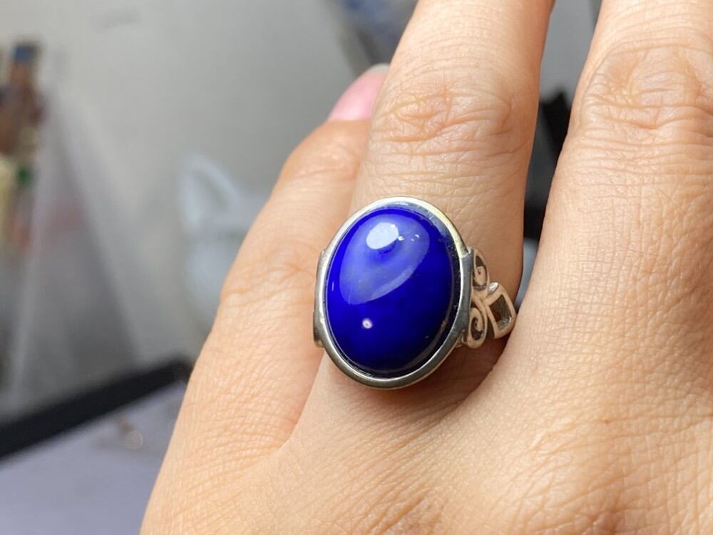 QJ2-10 シルバー 大粒 ラピスラズリ 青金石 リング 指輪 金属アレルギー対応
