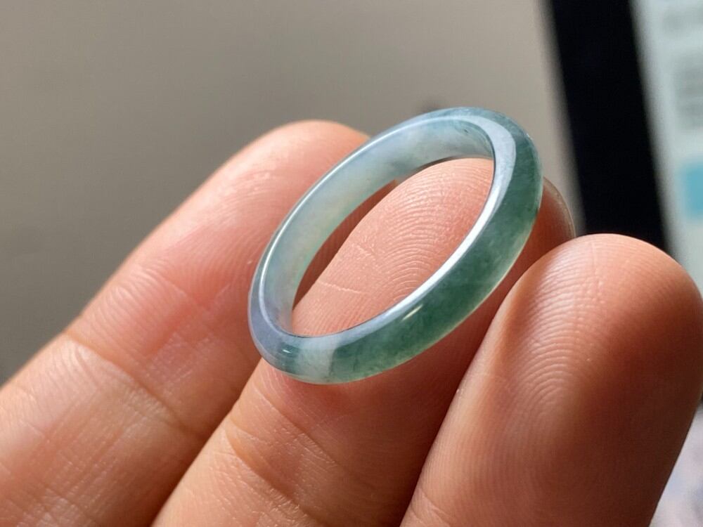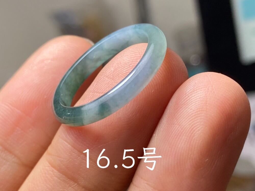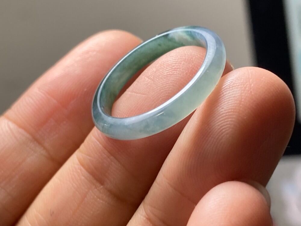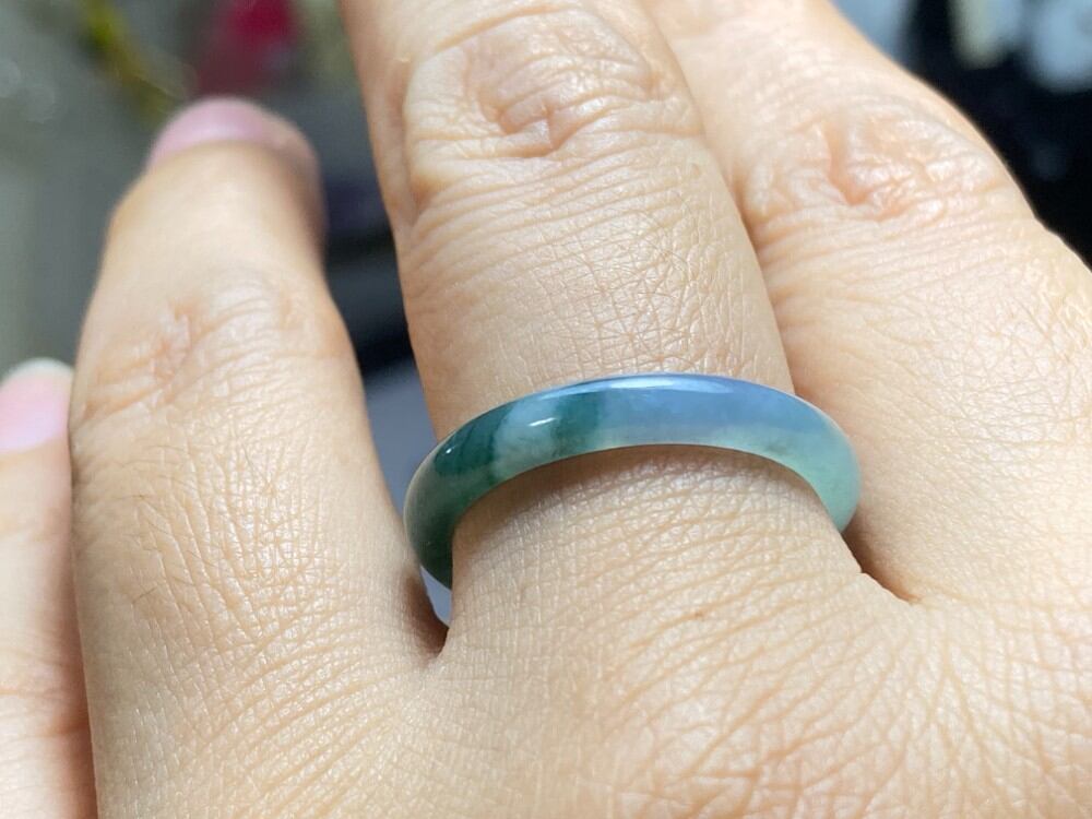 L11-238 グレー青 16.5号 天然グアテマラ産 A貨 本翡翠 くりぬき リング
