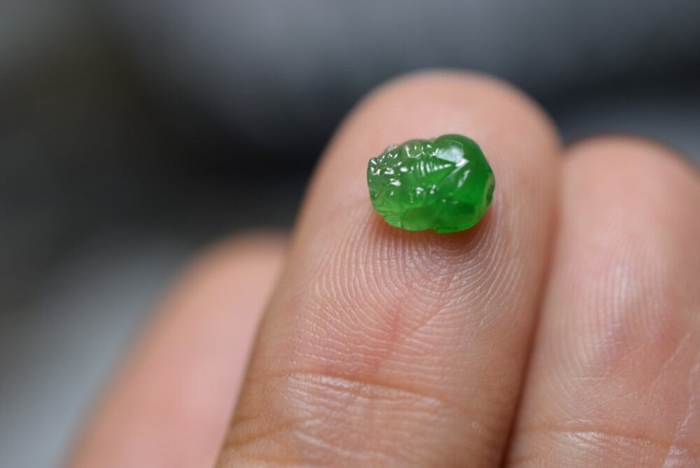 氷種 宝石質 陽緑 貔貅 ミャンマー産 天然 A貨 本翡翠 ルース、一点物(*^^*)