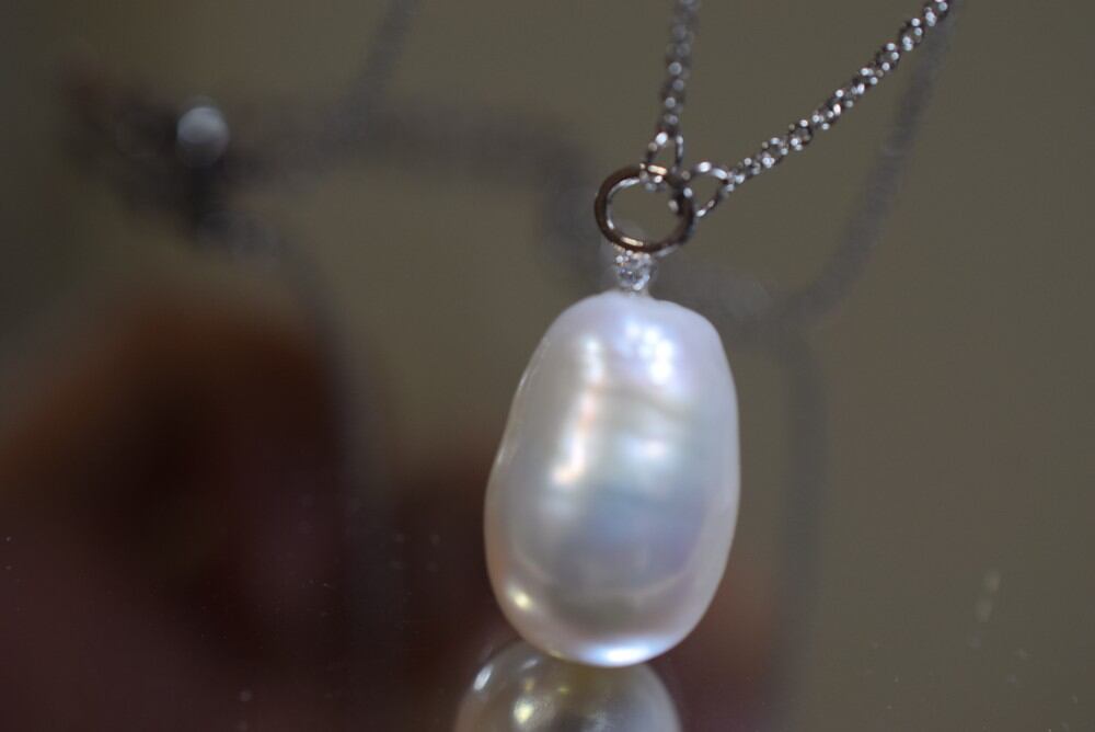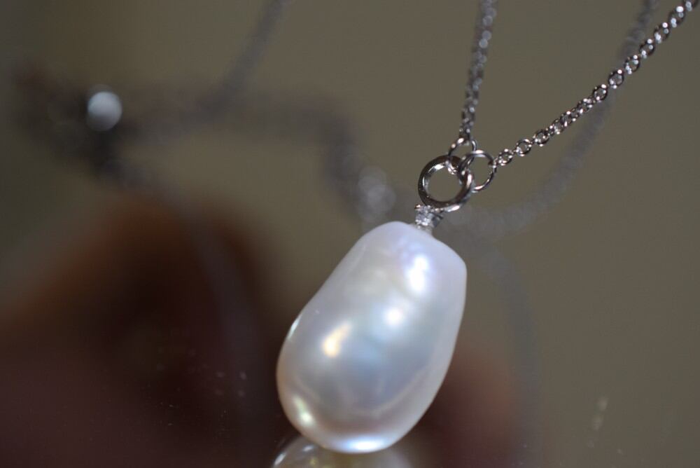 NK38 上品 大粒 バロック 淡水 パール ネックレス 金属アレルギー対応 ホワイトゴールド