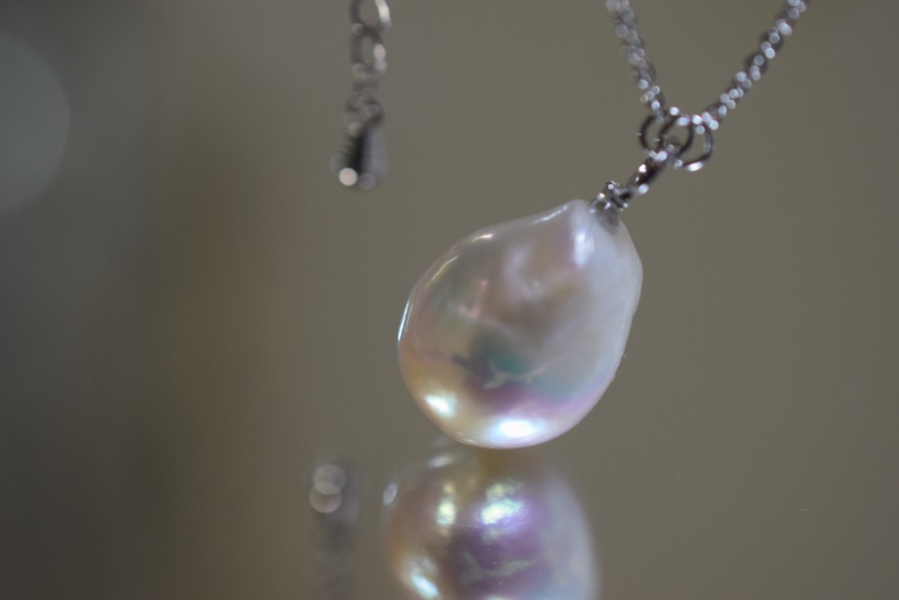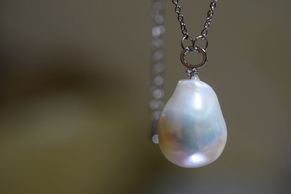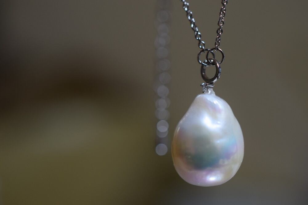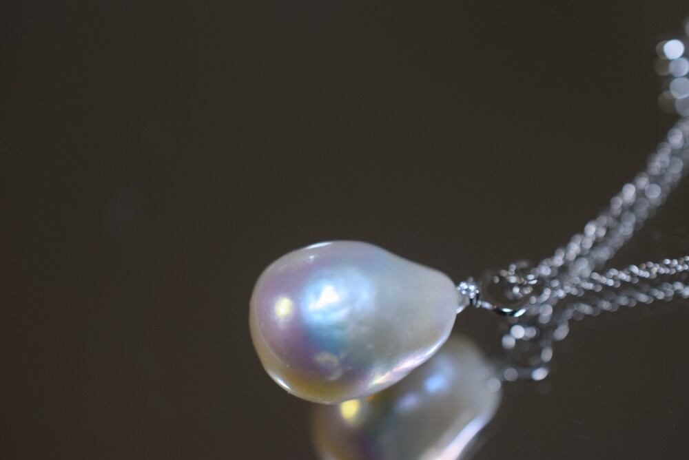 NK37 上品 大粒 バロック 淡水 パール ネックレス 金属アレルギー対応 ホワイトゴールド