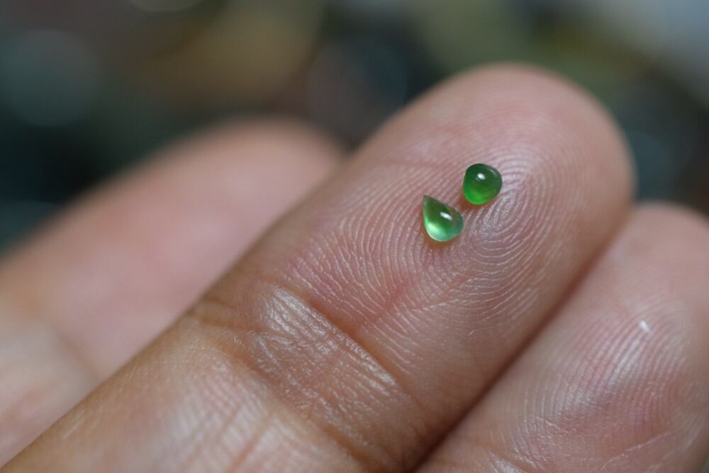 極上品 若緑 陽緑 高氷種 宝石質 ミニ 雫 ミャンマー産 天然 A貨 本翡翠 ルース、一点物(*^^*)