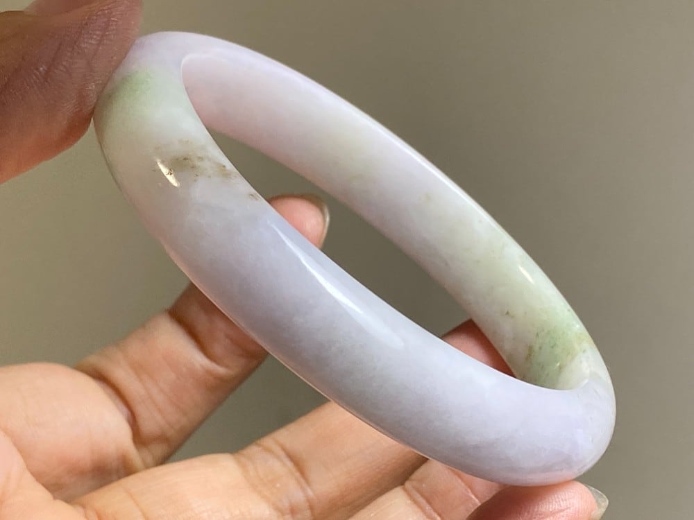 BG9-33 訳あり処分品 58.5mm 春彩 薄ピンクラベンダー ミャンマー産 A貨 本翡翠 バングル