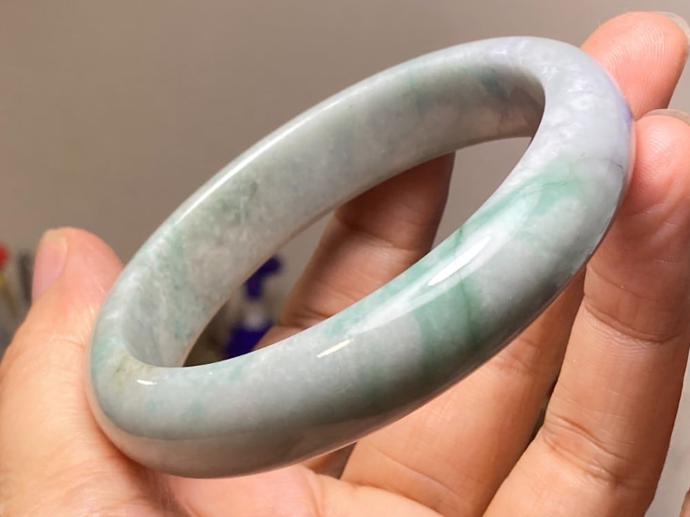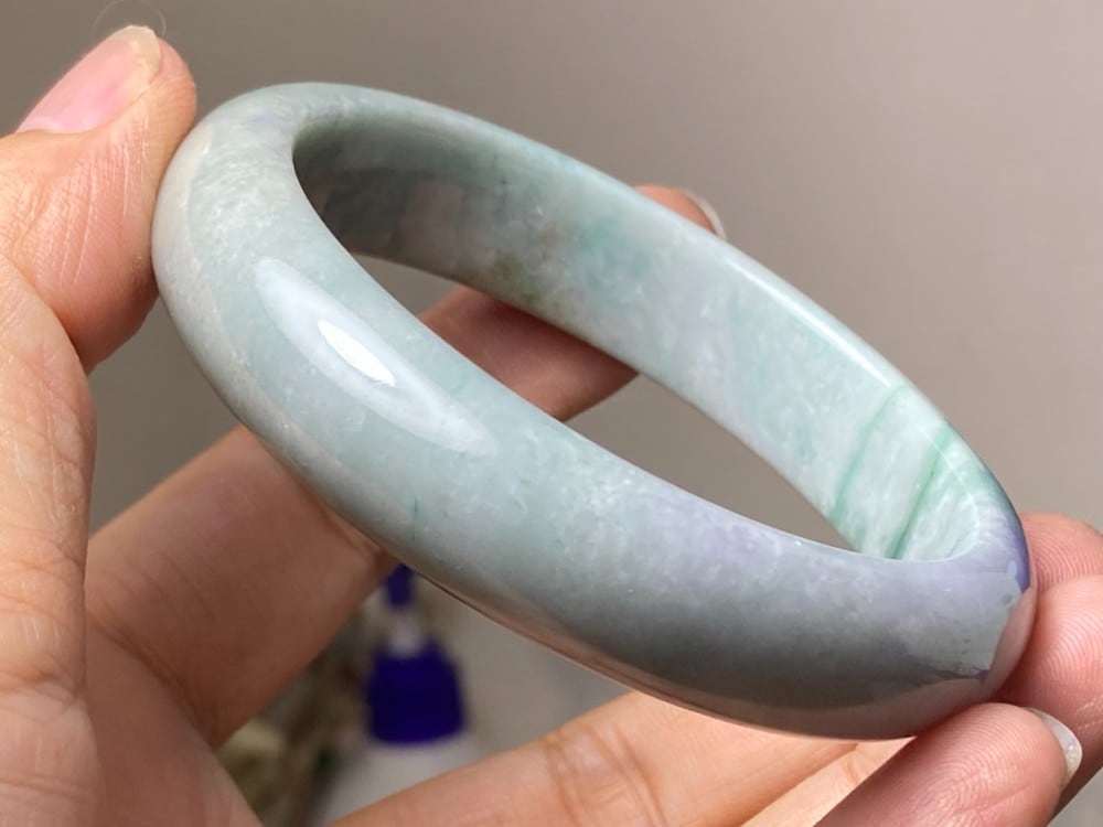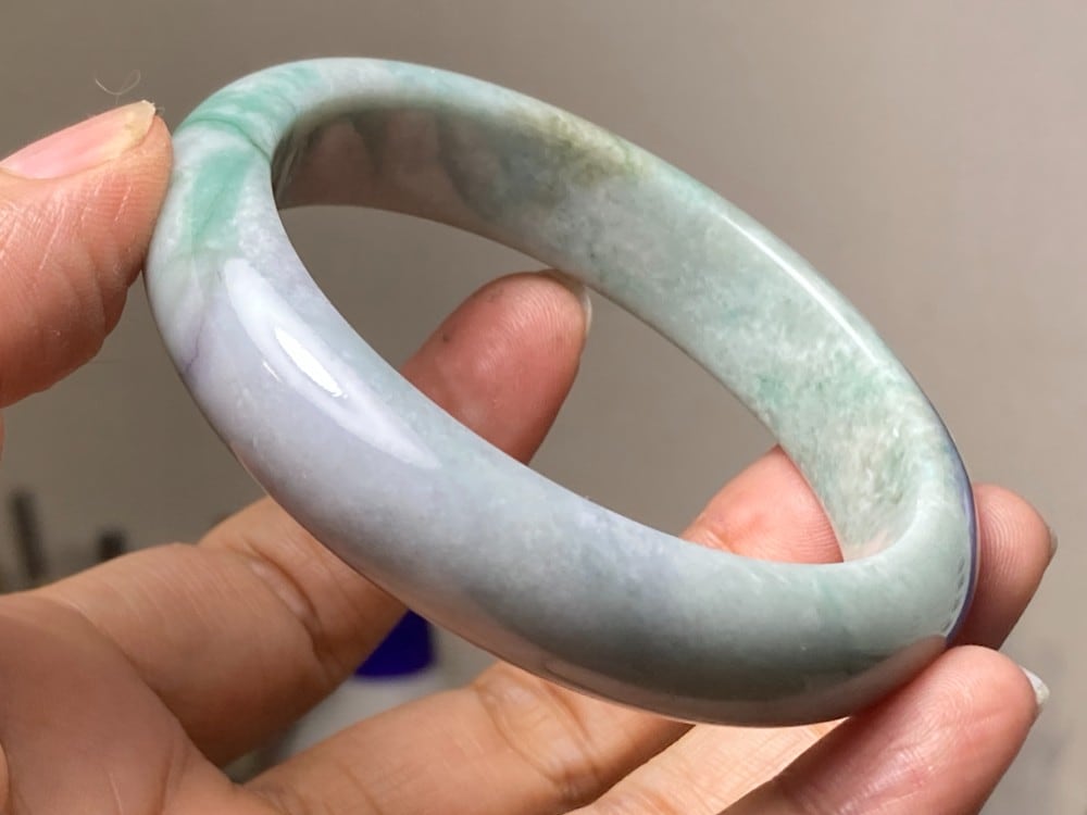 BG9-37 訳あり処分品 57.0mm グレー緑 ミャンマー産 A貨 本翡翠 バングル