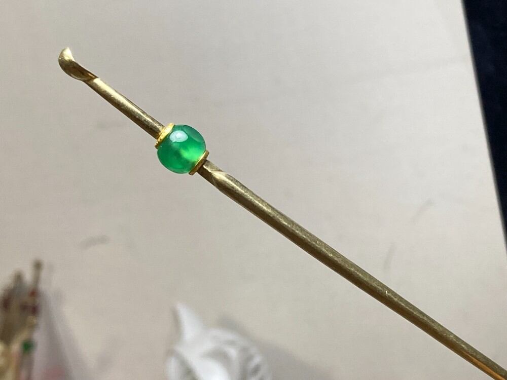 KZ4-71 一点物 天然 クリソプレーズ 簪 昭和風 二本軸 定番タイプ かんざし