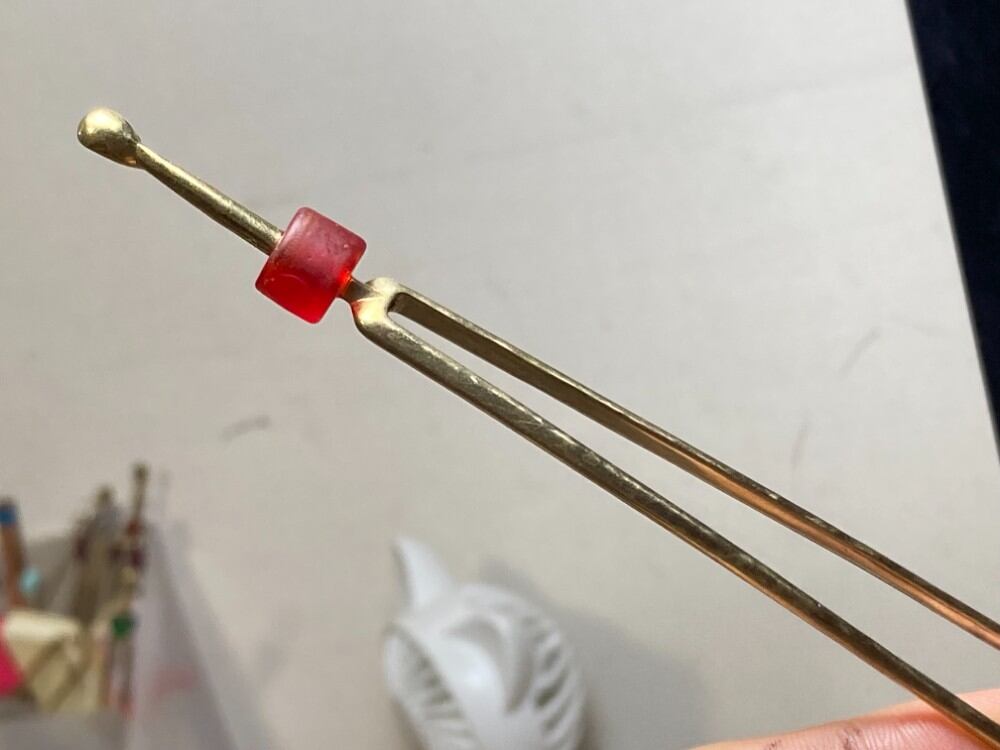 KZ4-70 一点物 真紅色 簪 七宝瑠璃玉 昭和風 二本軸 定番タイプ かんざし