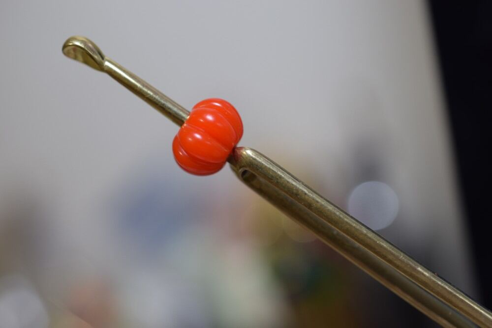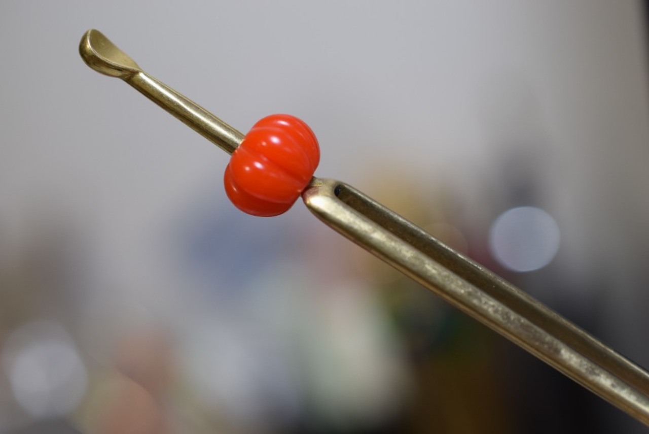 KZ4-77 一点物 珊瑚珠色 簪 七宝瑠璃玉 昭和風 二本軸 定番タイプ かんざし