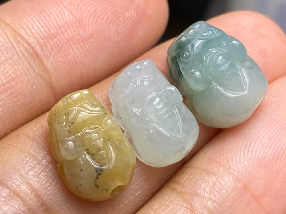 3点セット通穴 貔貅 本翡翠 ミャンマー産 A貨 財布貔貅 御守、一点物です