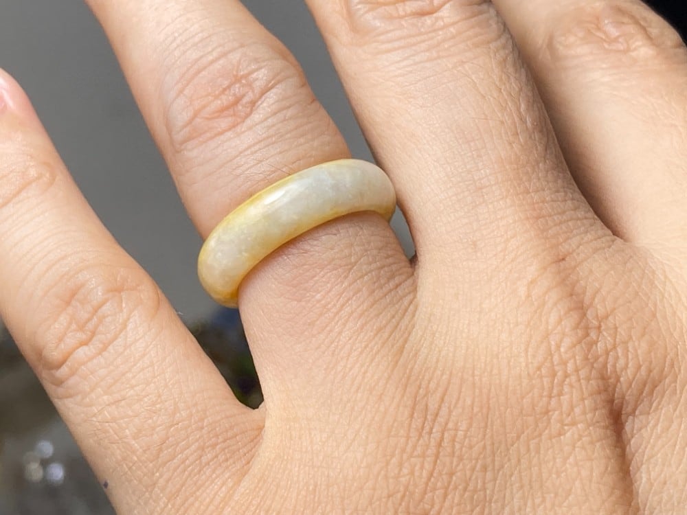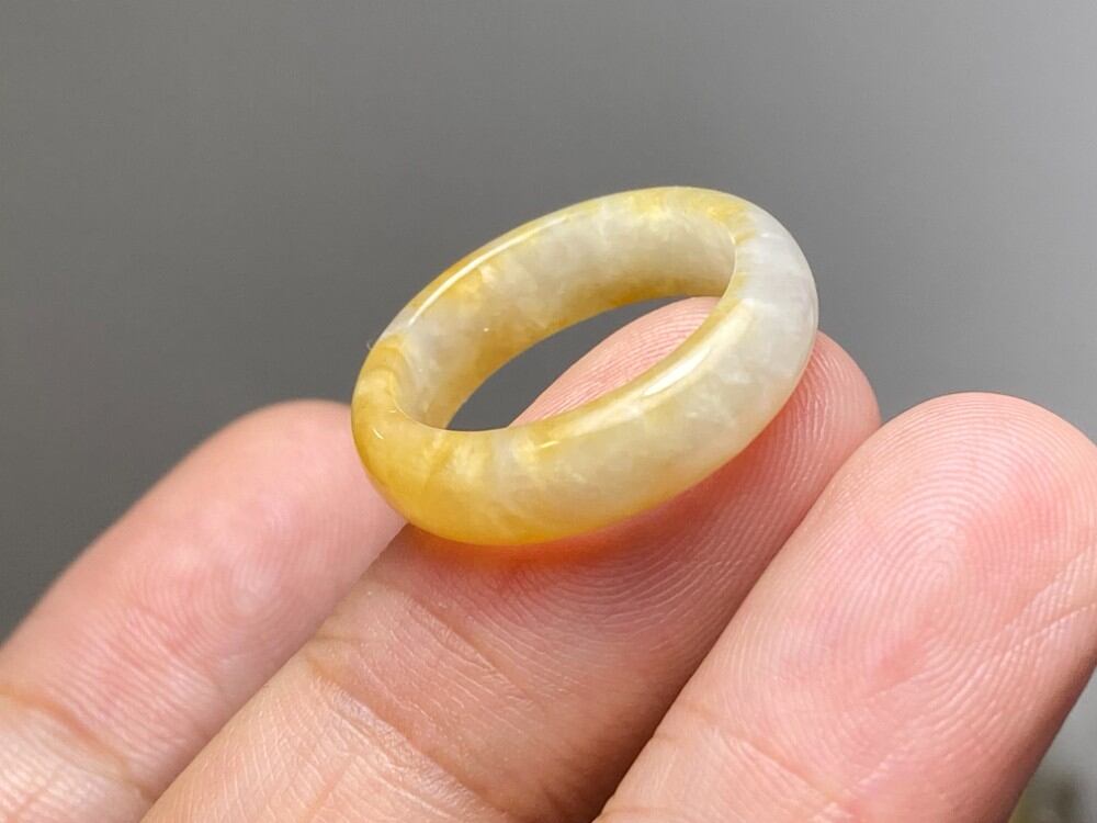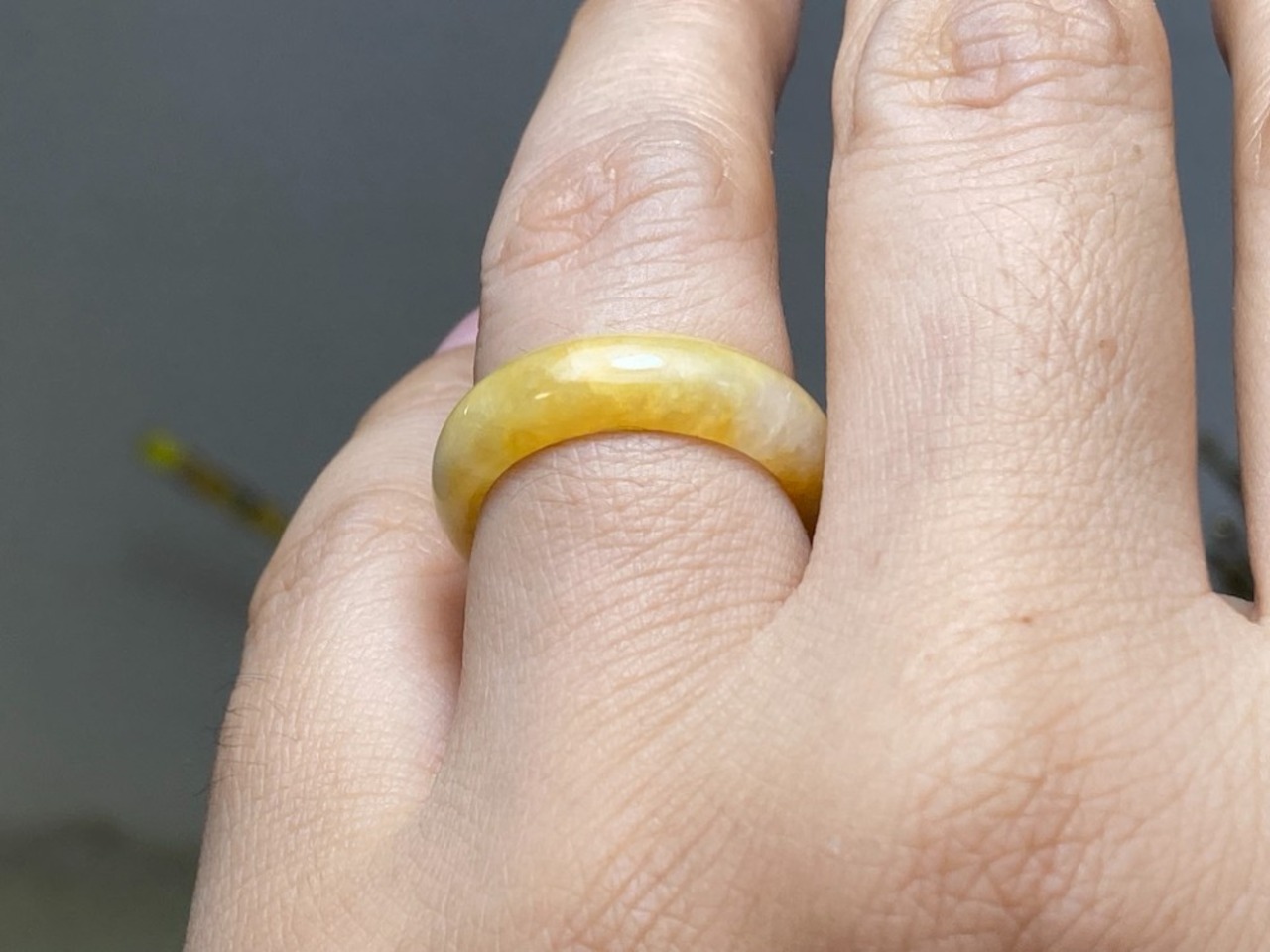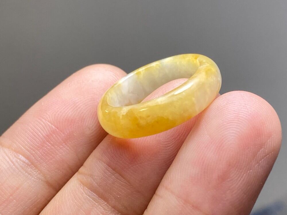 L12-51 訳あり処分品 黄翡翠 11.0号 ミャンマー産天然 A貨 本翡翠 くりぬき リング