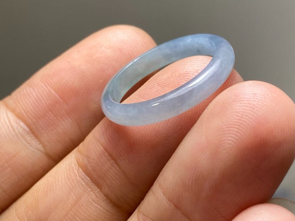 L12-50 氷種 超薄ラベンダー・ブルー 13.5号 天然グアテマラ産 A貨 本翡翠 くりぬき リング