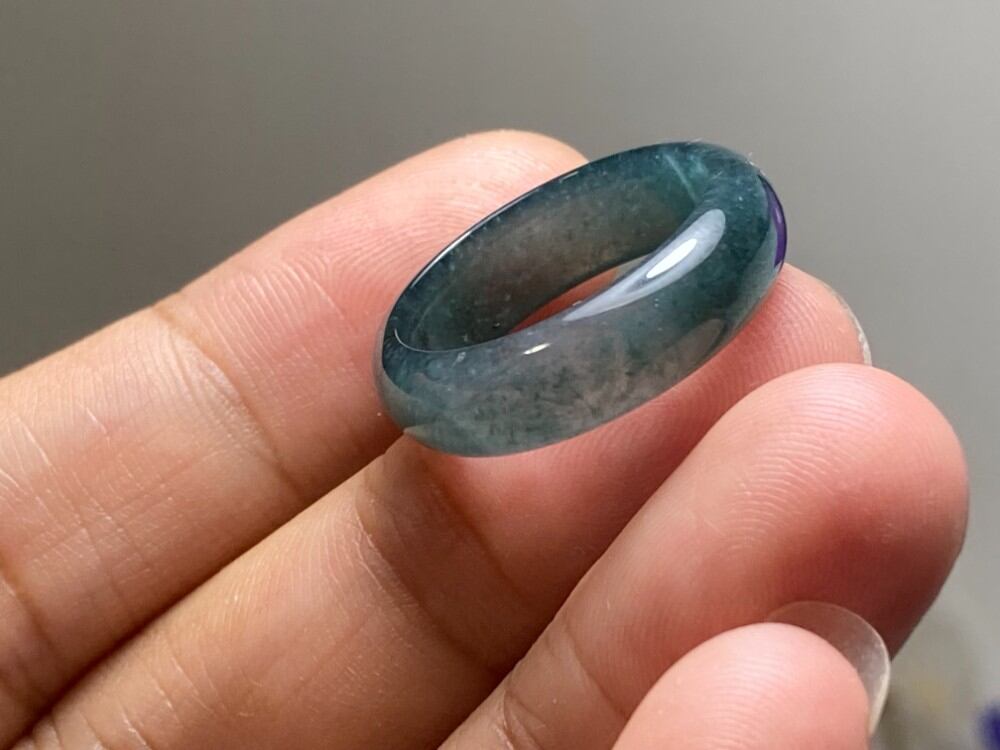 L12-59 氷種 深灰藍 16.5号 天然グアテマラ産 A貨 本翡翠 くりぬき リング