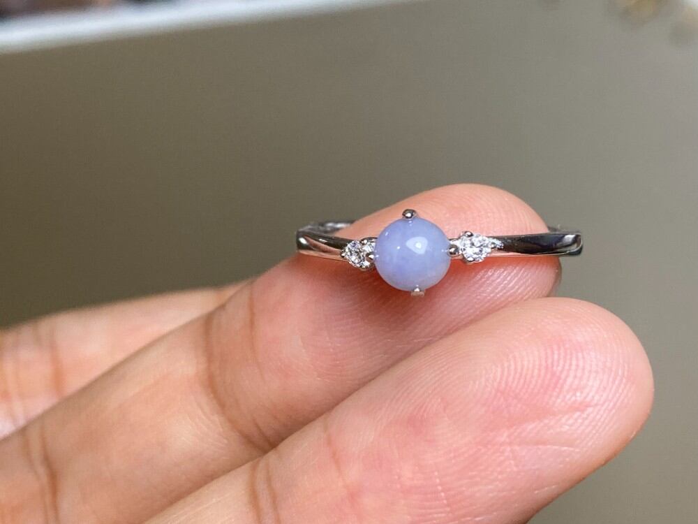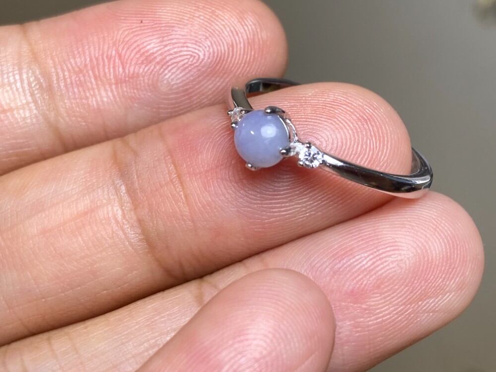 RG10-56 シルバー 氷糯種 ラベンダー ミャンマー産 本翡翠 ヒスイ 指輪 フリーサイズ 金属アレルギー対応