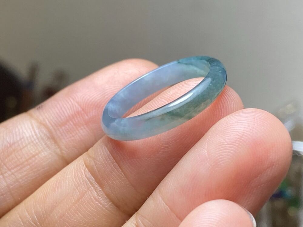 L12-75 氷種 灰・青色 13.5号 天然グアテマラ産 A貨 本翡翠 くりぬき リング