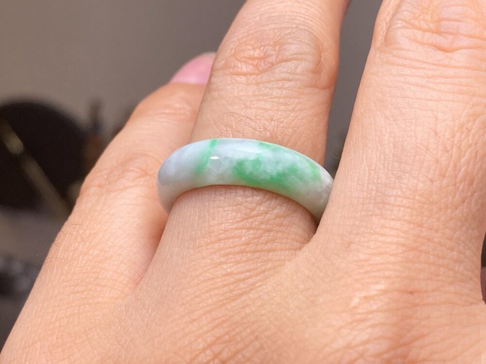 L12-85 美品 白底陽緑 16.5号 ミャンマー産天然 A貨 本翡翠 くりぬき リング