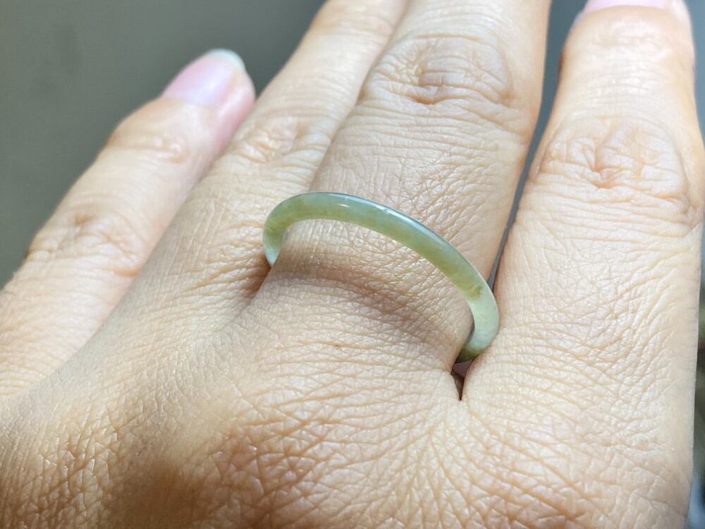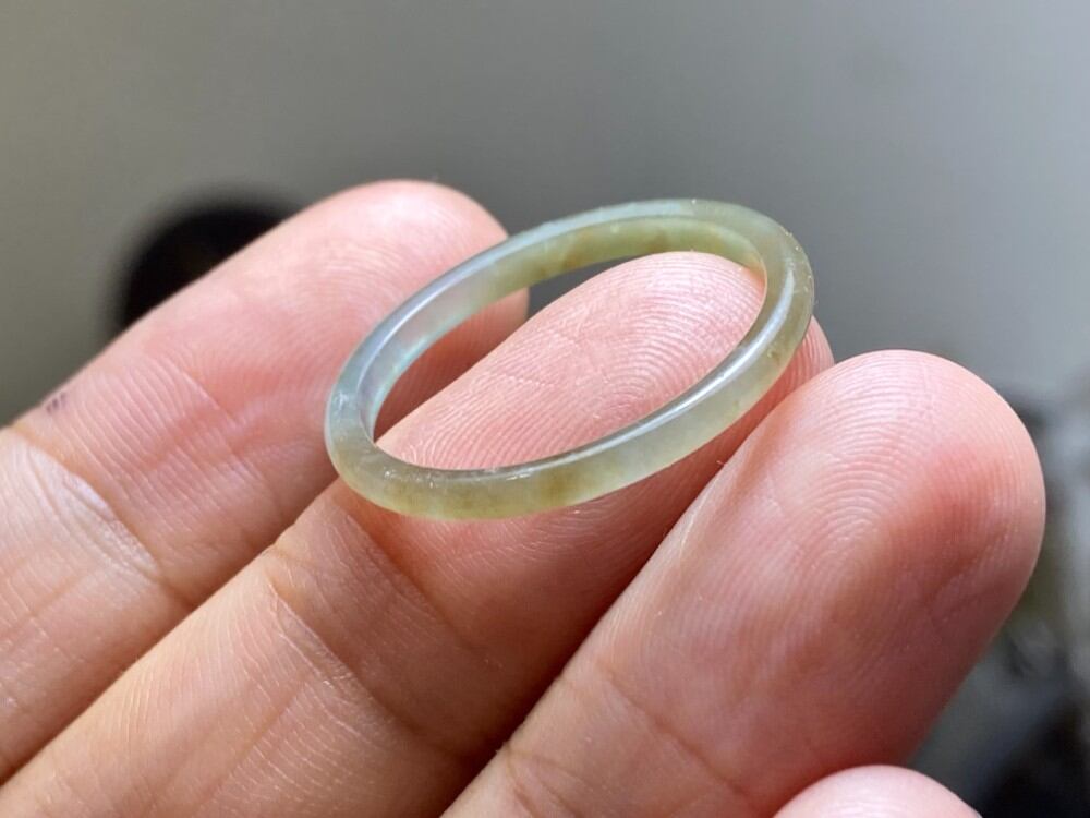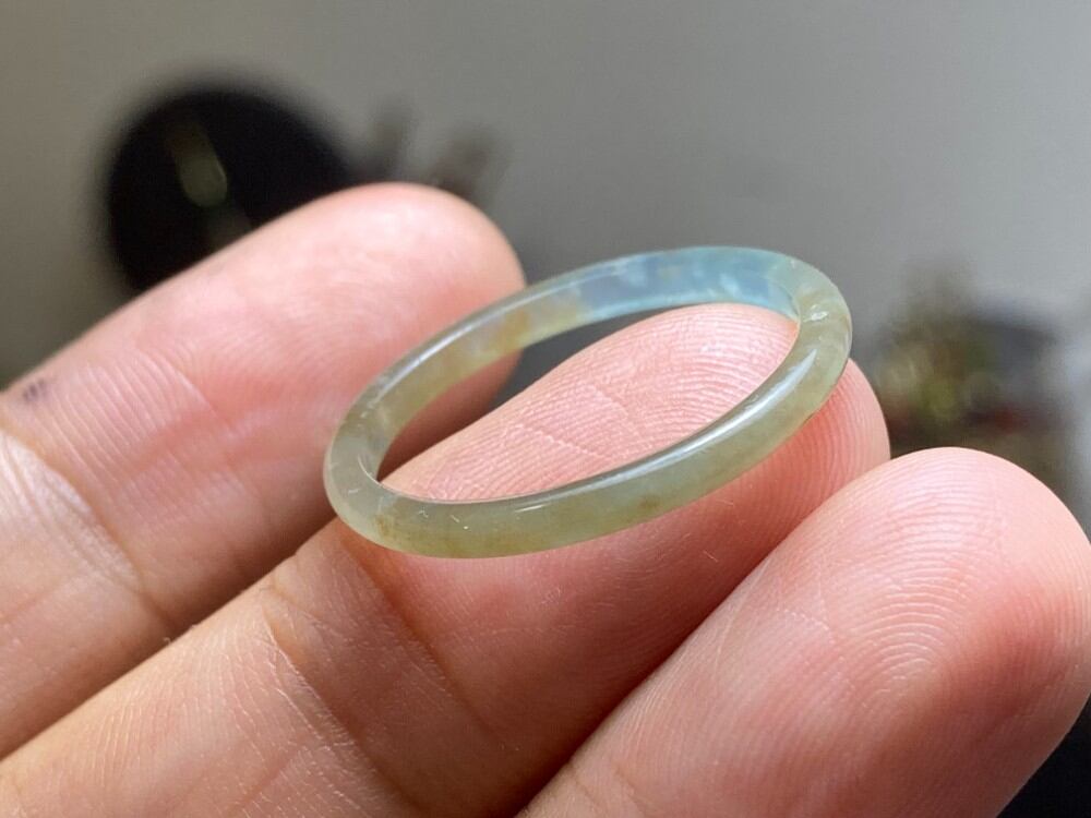 L12-88 細身 氷種 黄・青色 21.5号 天然グアテマラ産 A貨 本翡翠 くりぬき リング