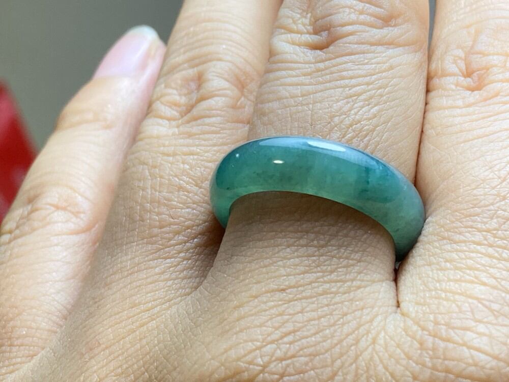 L12-96 氷種 青緑色 16.5号 天然グアテマラ産 A貨 本翡翠 くりぬき リング