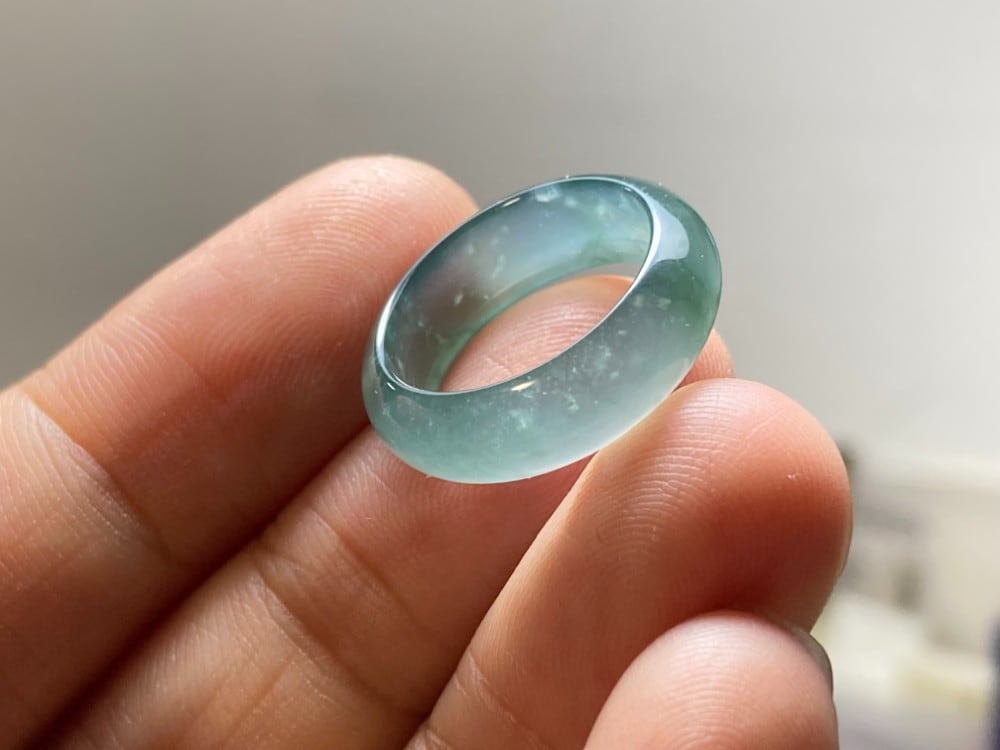L12-116 極品 ピンキーリング 高氷種 緑 7.0号 天然グアテマラ産 A貨 本翡翠 くりぬき リング