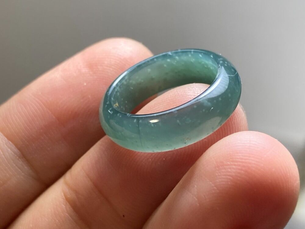 L12-115 ピンキーリング 氷種 青灰緑 7.5号 天然グアテマラ産 A貨 本翡翠 くりぬき リング